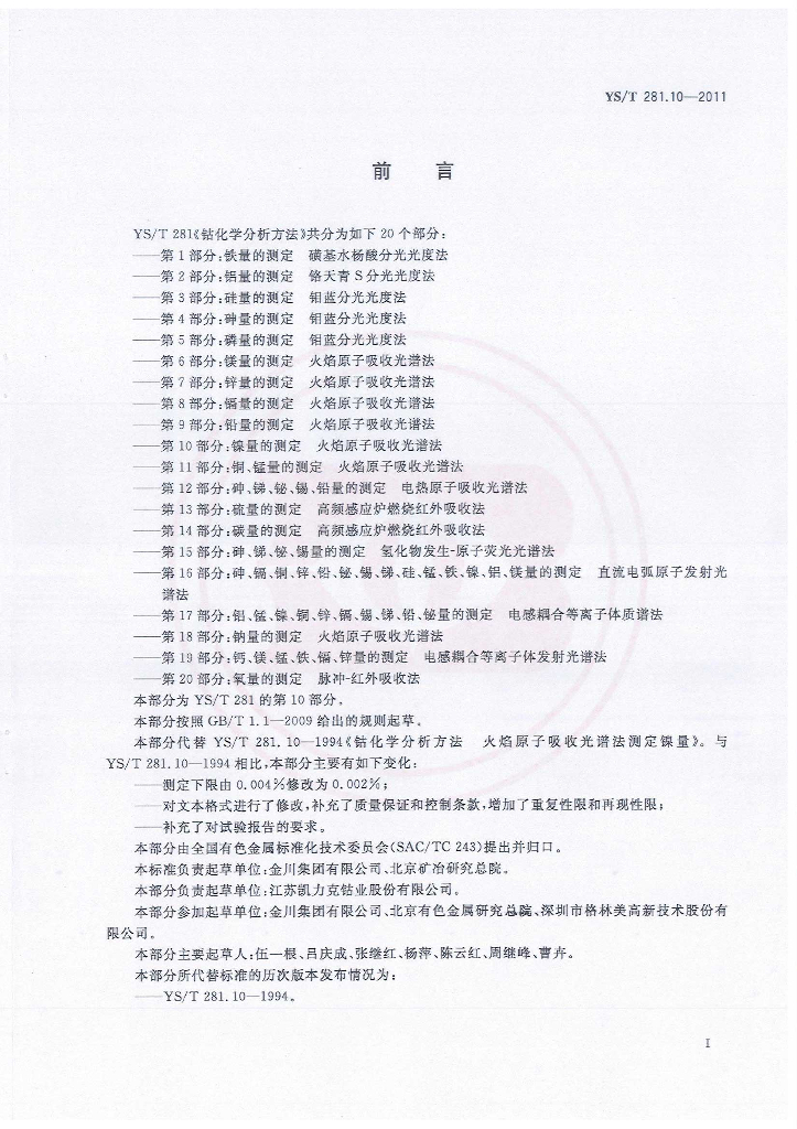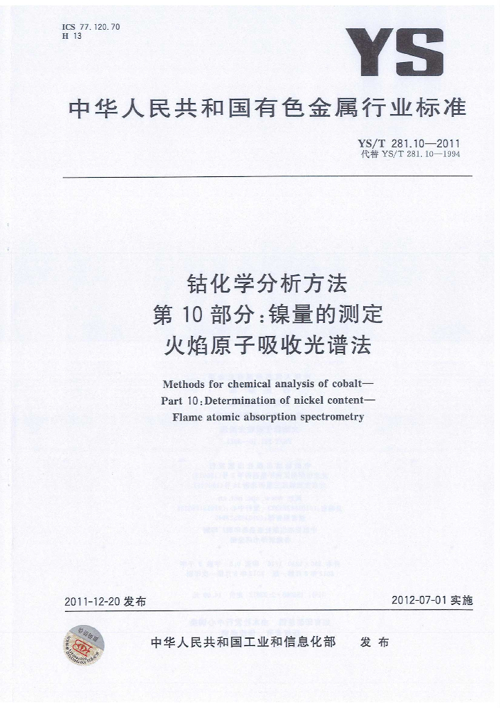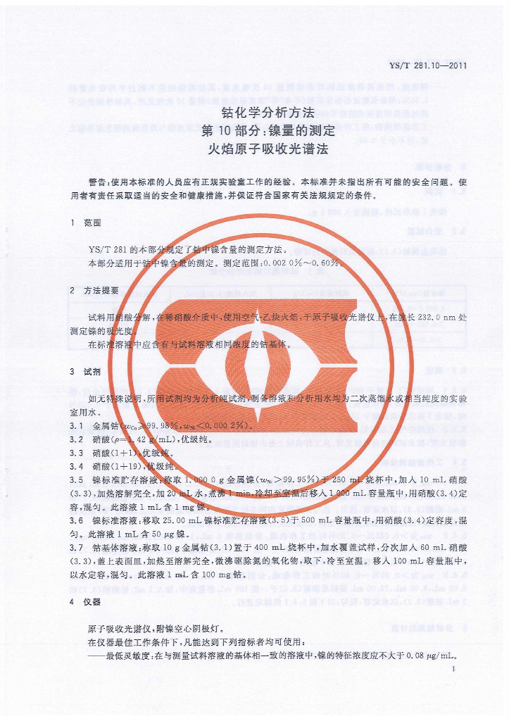 YS/T 281.10-2011 钴化学分析方法 第10部分:镍量的测定