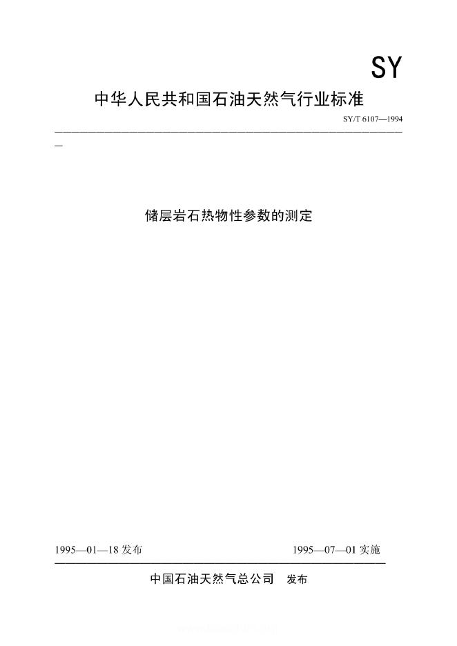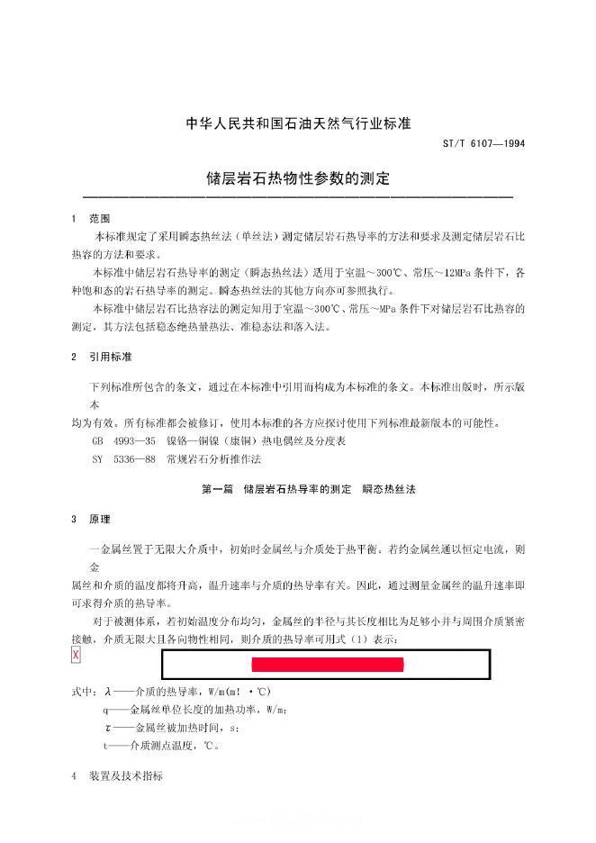SY/T 6107-1994 储层岩石热物性参数的测定