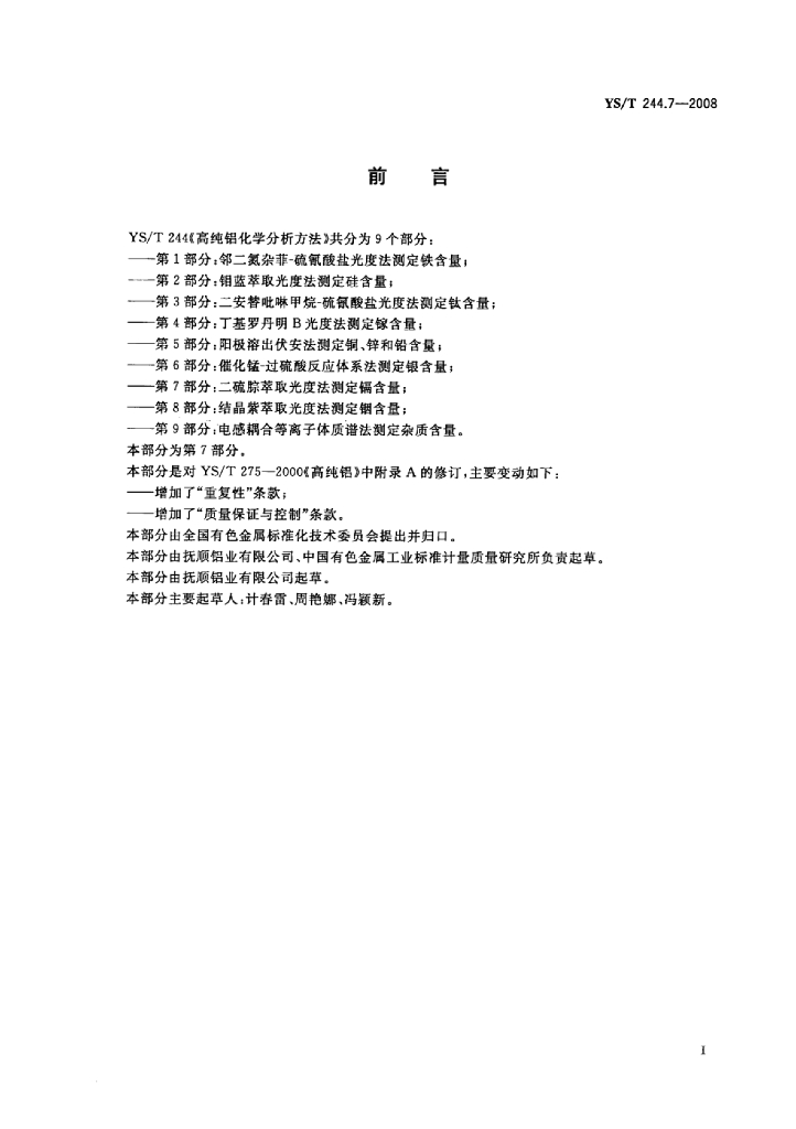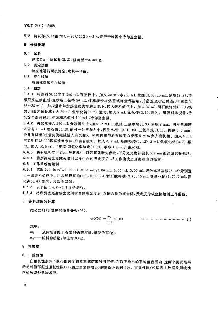 YS/T 244.7-2008 高纯铝化学分析方法 第7部分:二硫腙萃取光度法测定镉含量