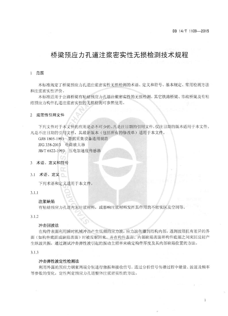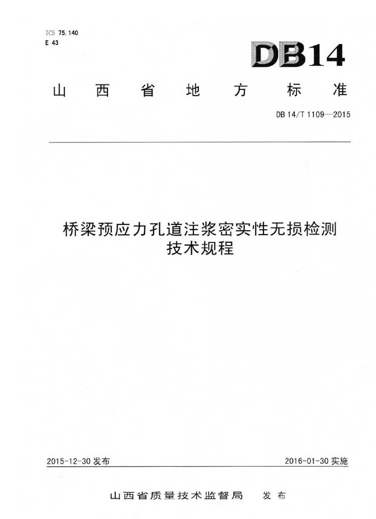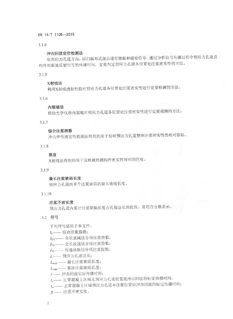 DB14/T 1109-2015 桥梁预应力孔道注浆密实性无损检测技术规程