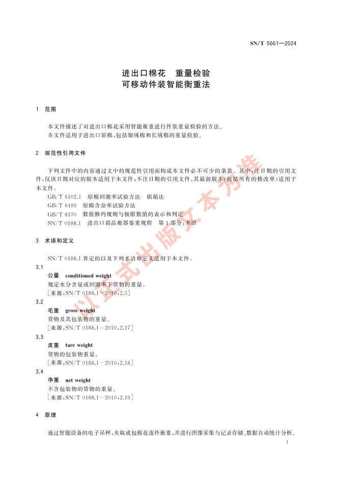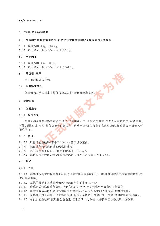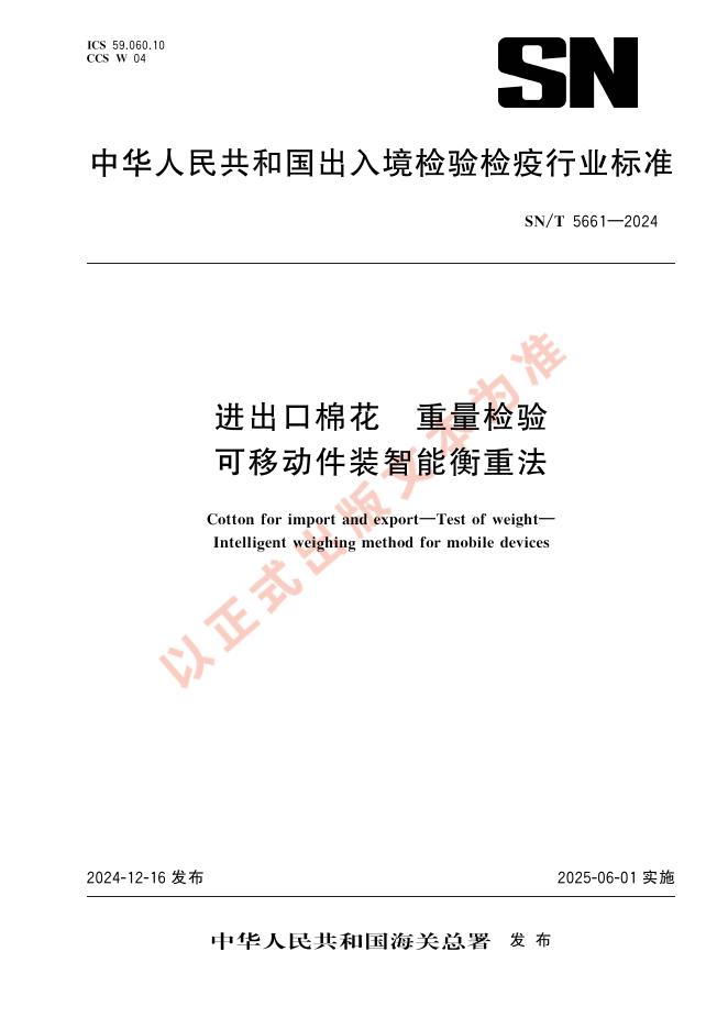 SN/T 5661-2024 进出口棉花 重量检验 可移动件装智能衡重法