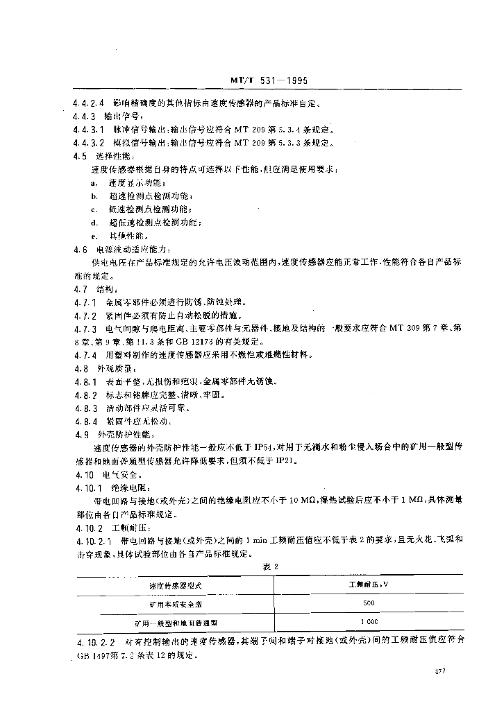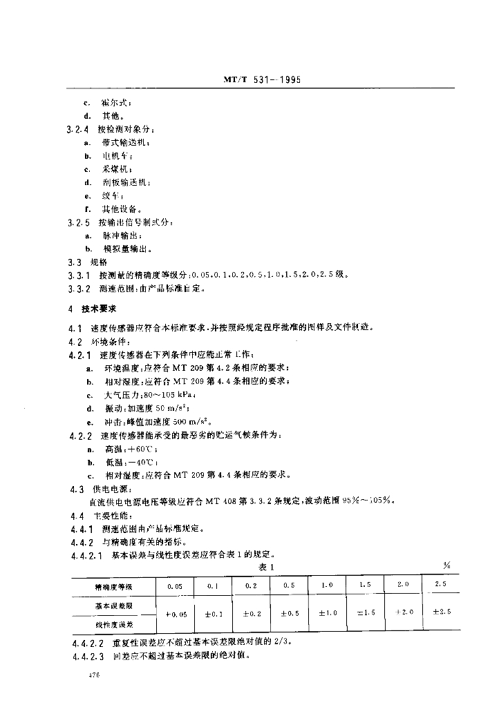 MT/T 531-1995 煤矿用速度传感器
