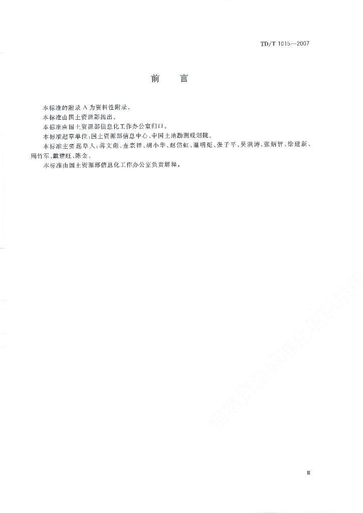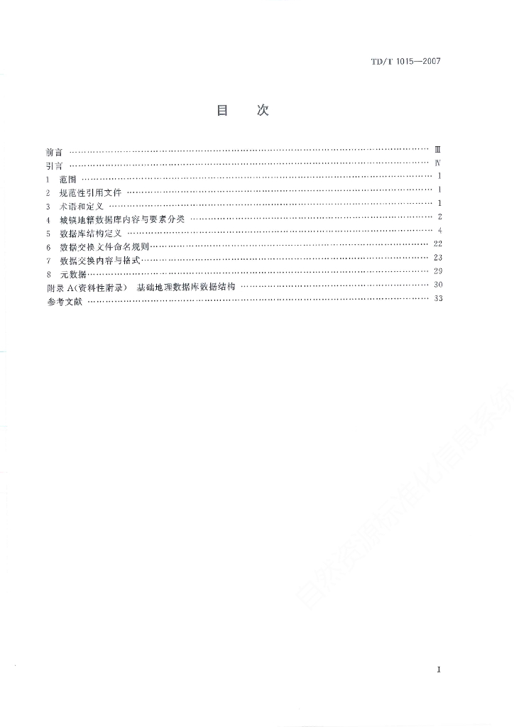 TD/T 1015-2007 城镇地籍数据库标准