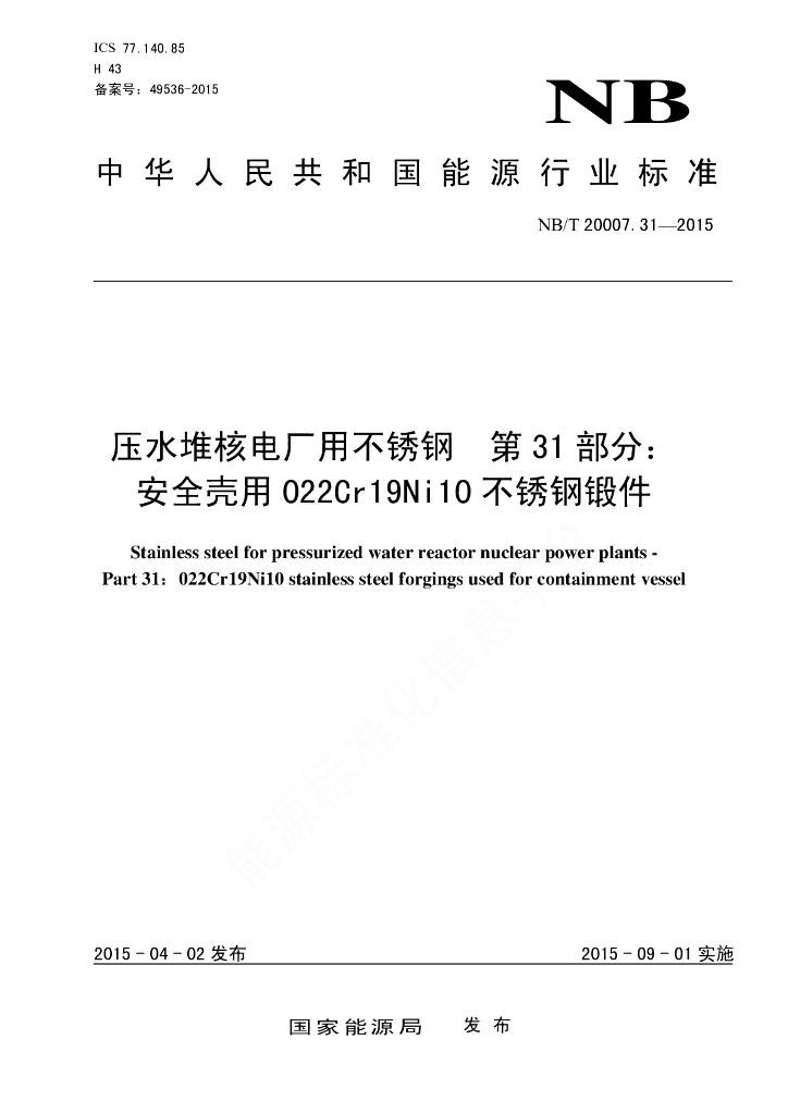 上海核工程研究设计院、上海重型机器厂有限公司负责起草,中广核工程有限公司等