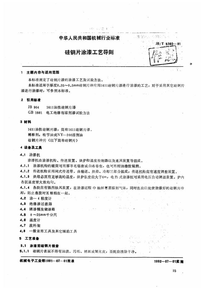 JB/T 5260-1991 硅钢片涂漆工艺导则