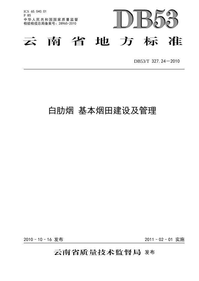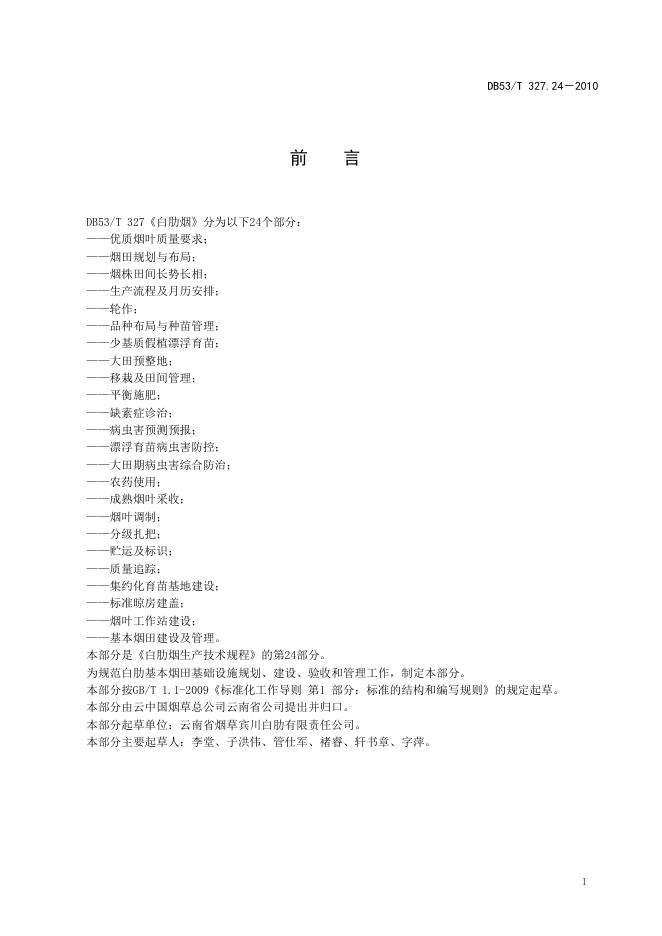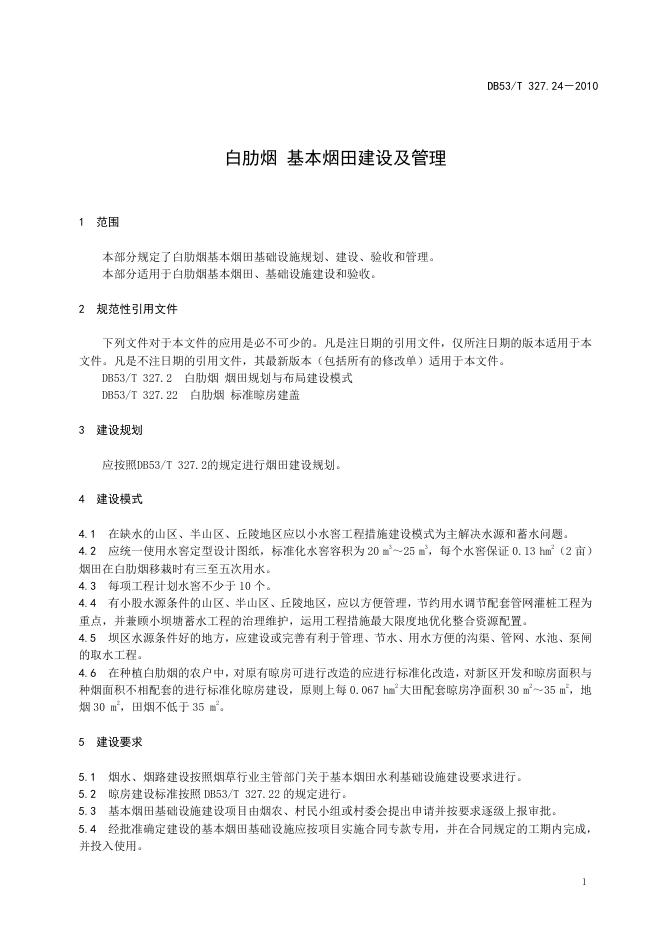 DB53/T 327.24-2010 白肋烟 基本烟田建设及管理