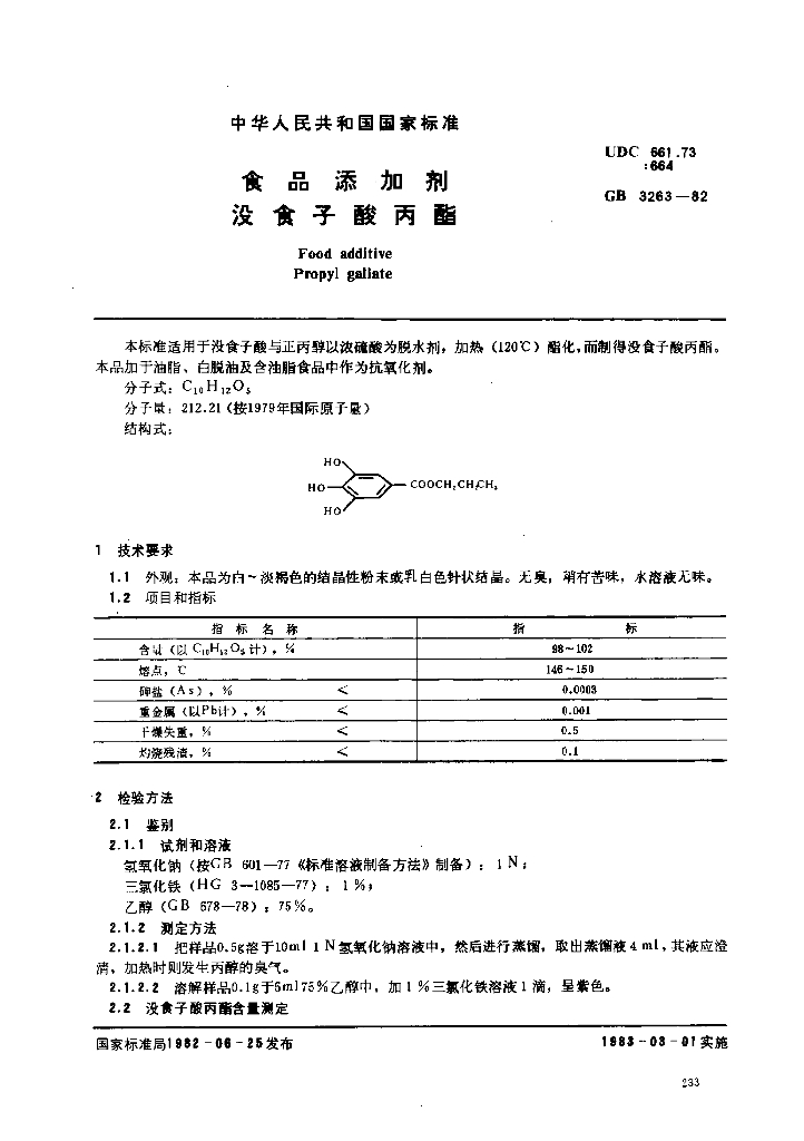 GB 3263-1982 食品添加剂 没食子酸丙酯