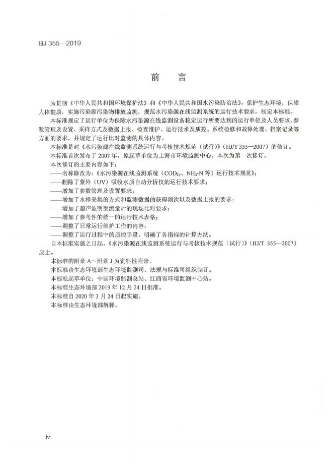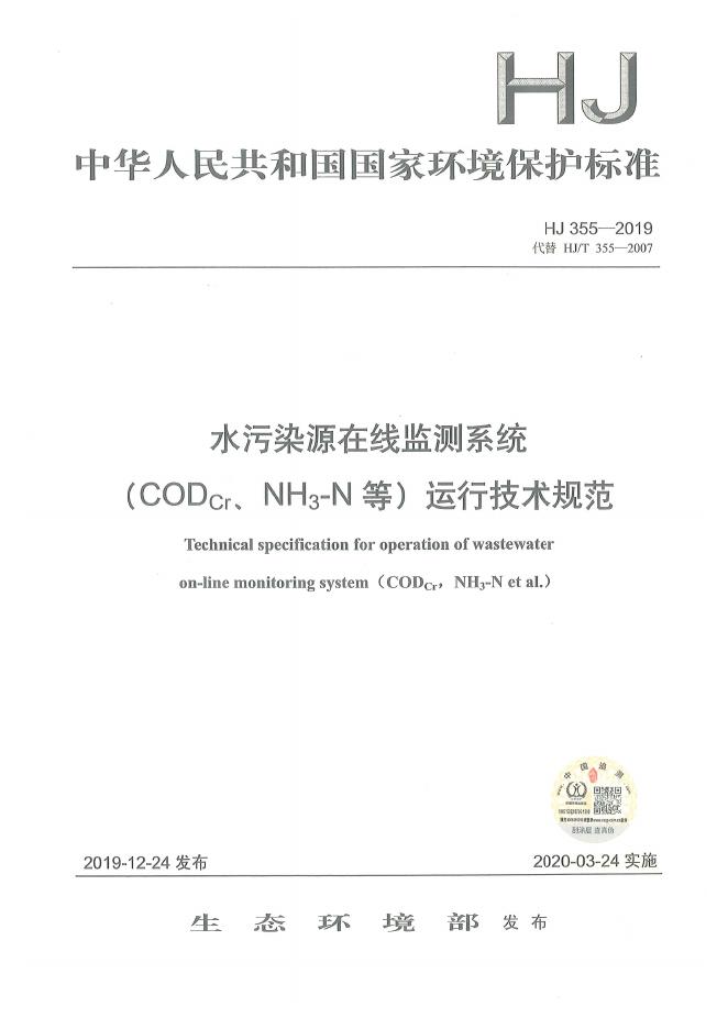 HJ 355-2019 水污染源在线监测系统(CODCr、NH3-N等)运行技术规范