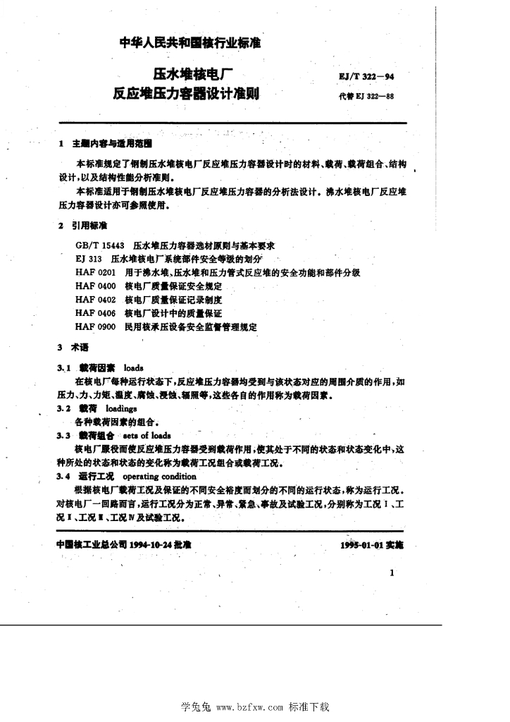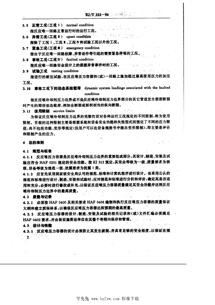 EJ/T 322-1994 压水堆核电厂反应堆压力容器设计准则