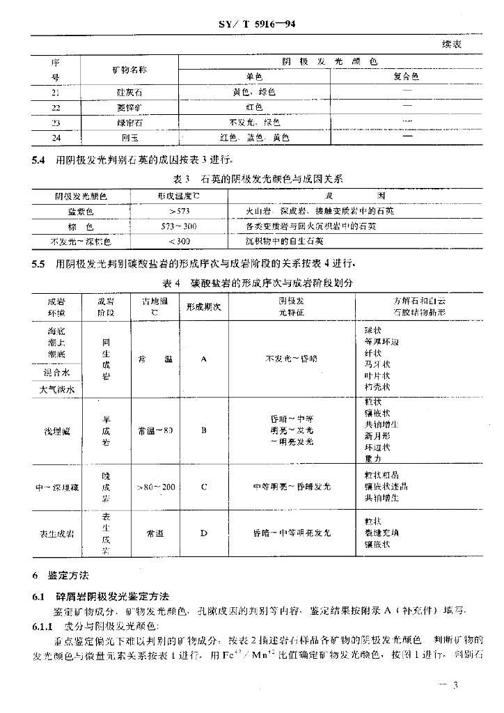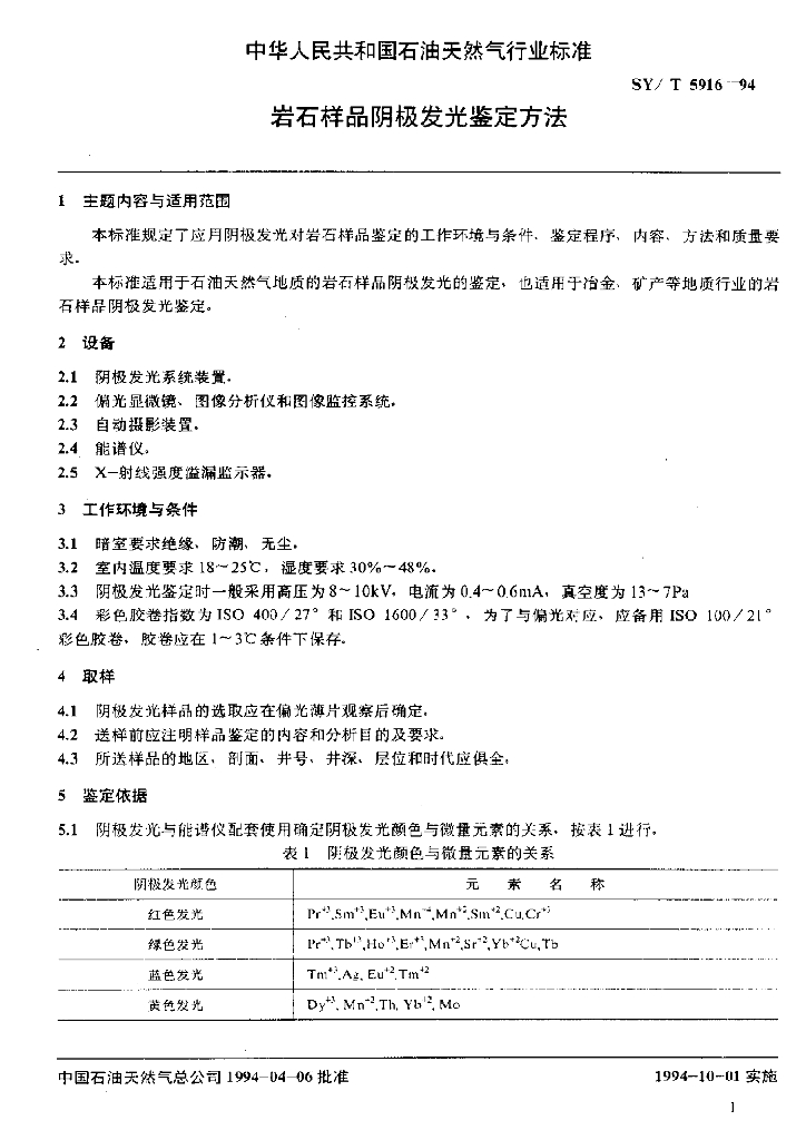SY/T 5916-1994 岩石样品阴极发光鉴定方法