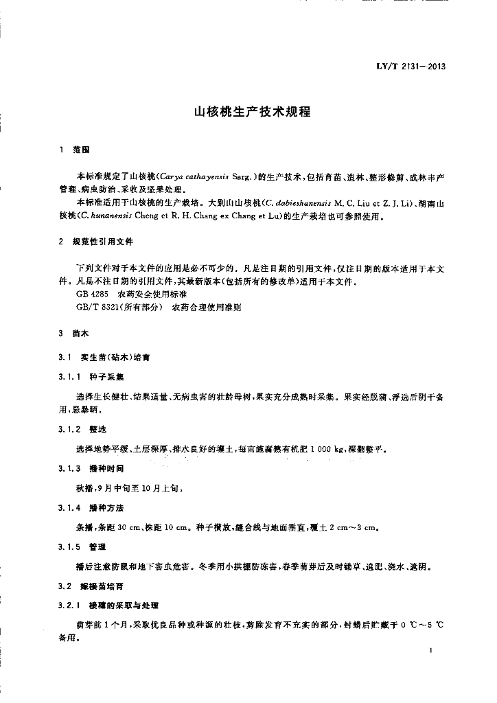 LY/T 2131-2013 山核桃生产技术规程
