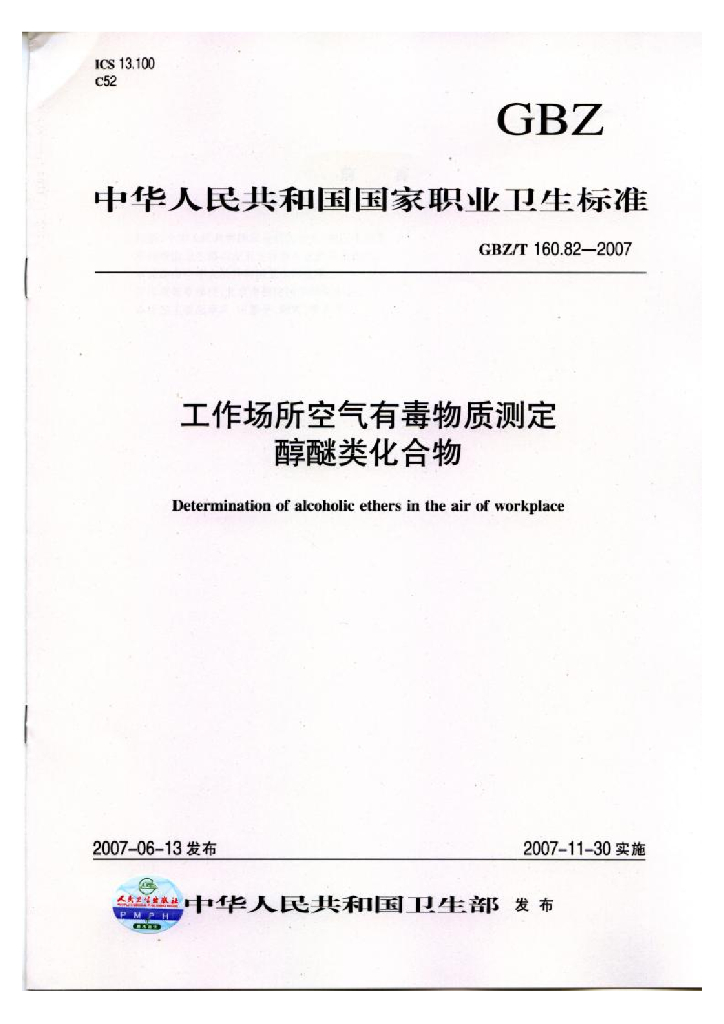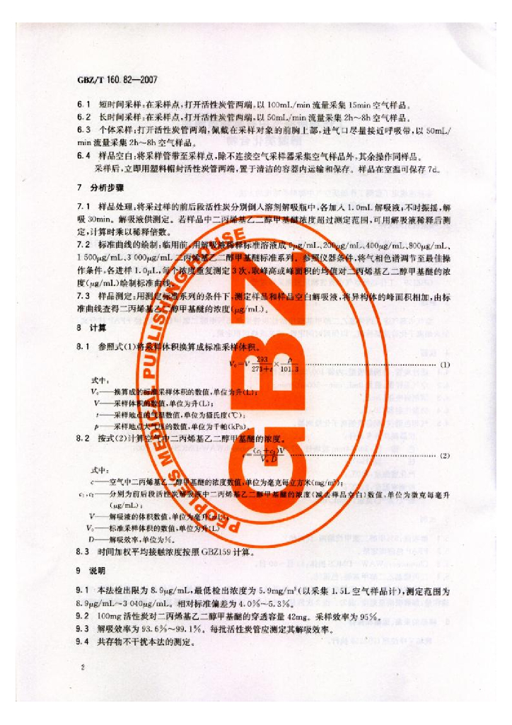 GBZ/T 160.82-2007 工作场所空气有毒物质测定 醇醚类化合物