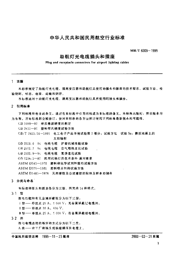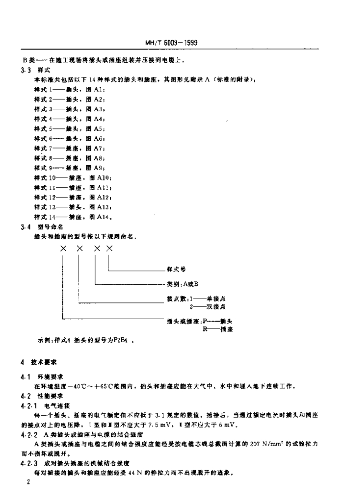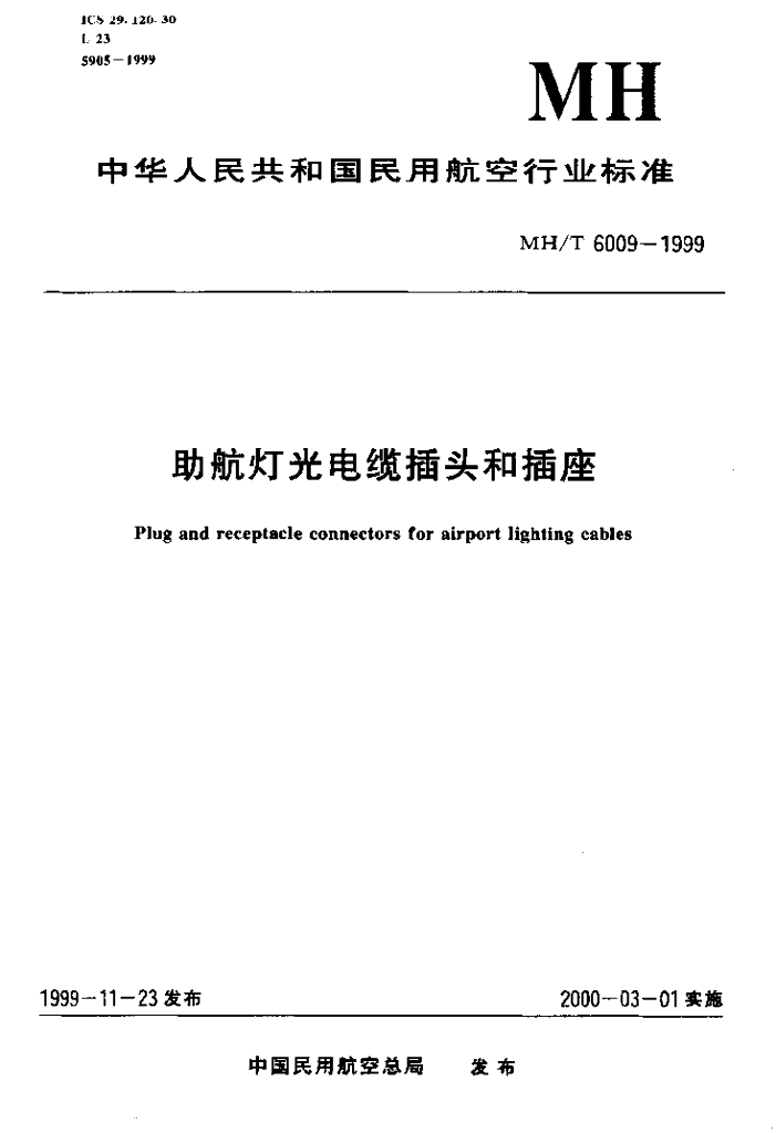 MH/T 6009-1999 助航灯光电缆插头和插座