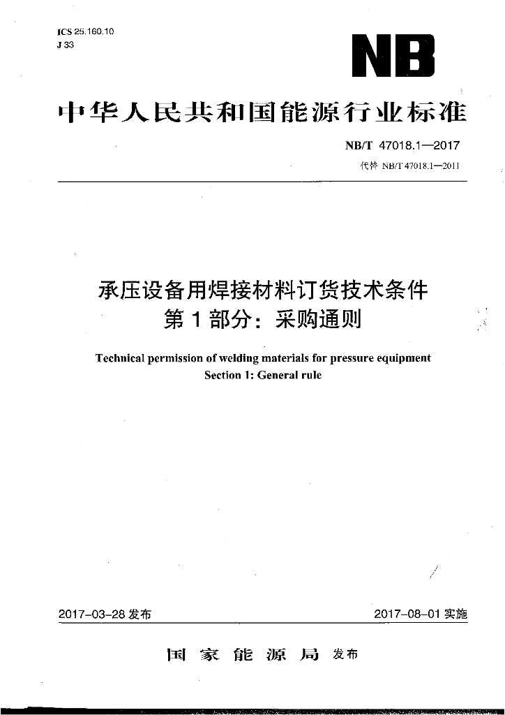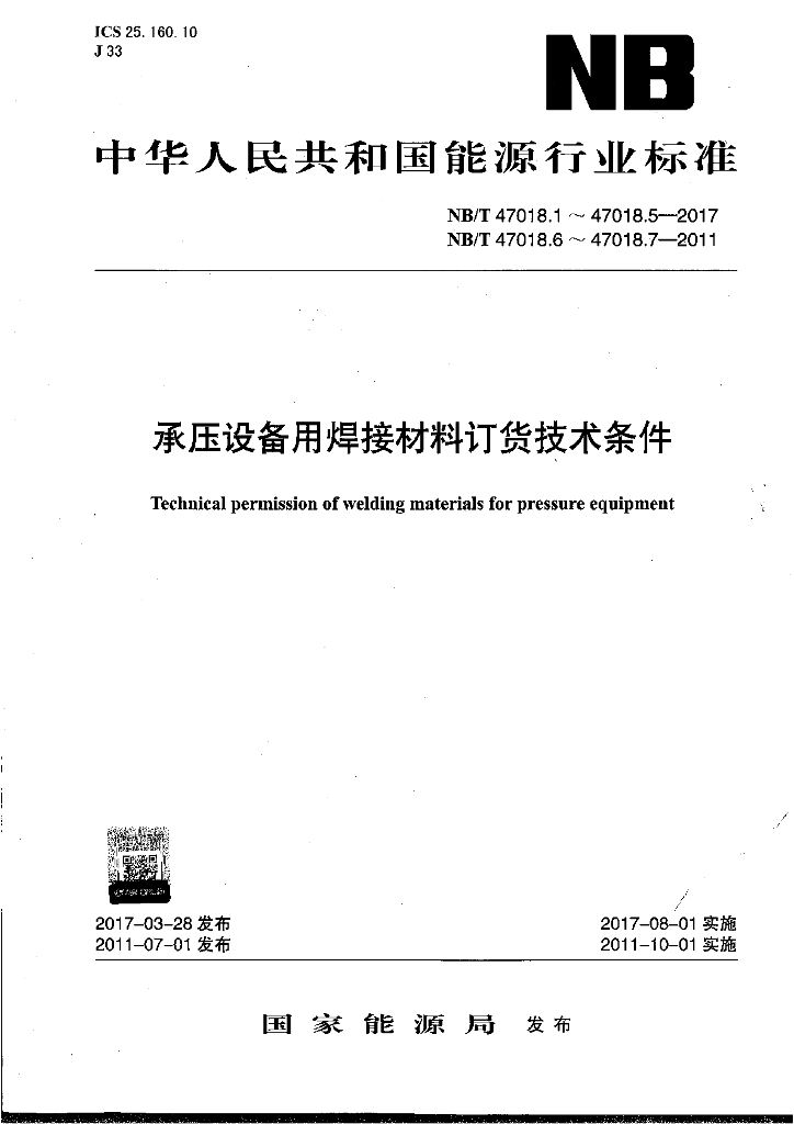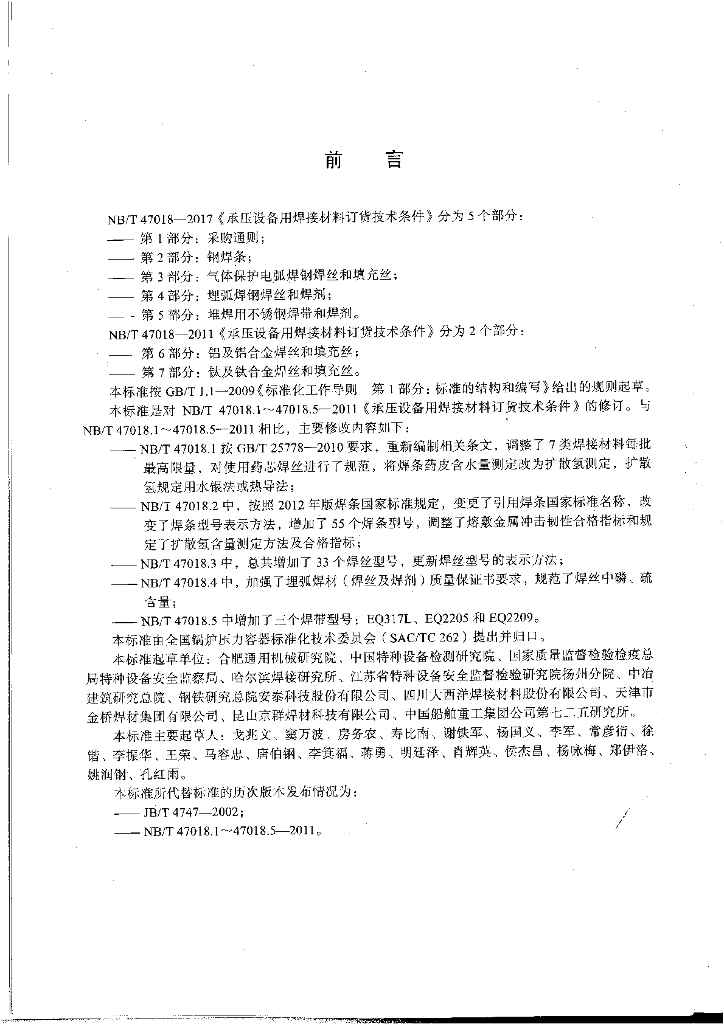 NB/T 47018-2017 承压设备用焊接材料订货技术条件