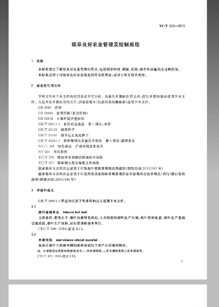 YC/T 523-2015 烟草良好农业管理及控制规程