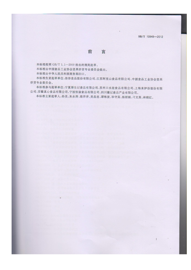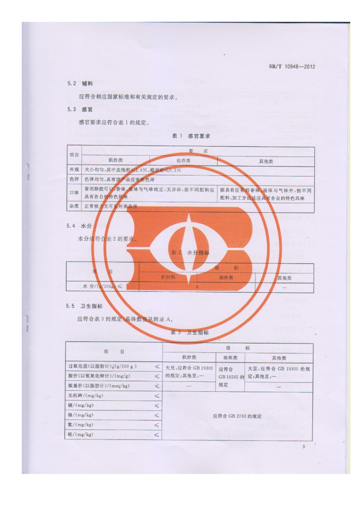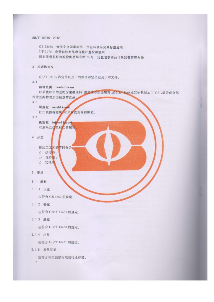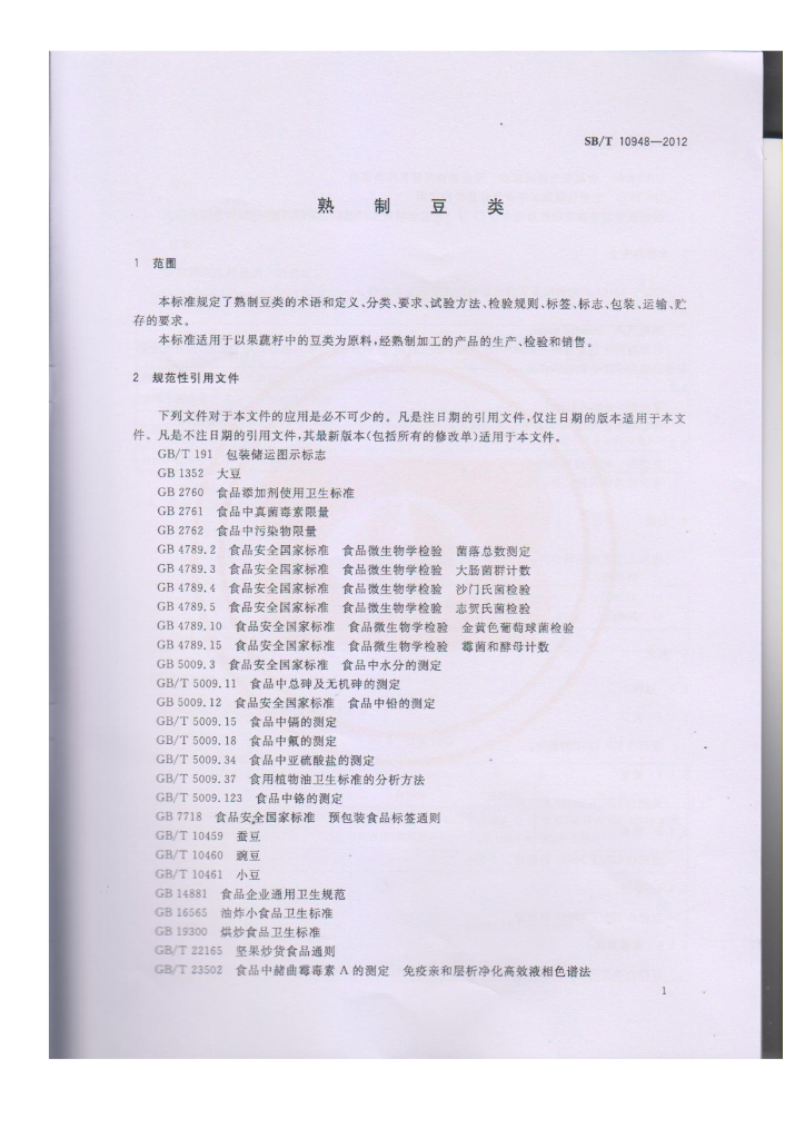 SB/T 10948-2012 熟制豆类