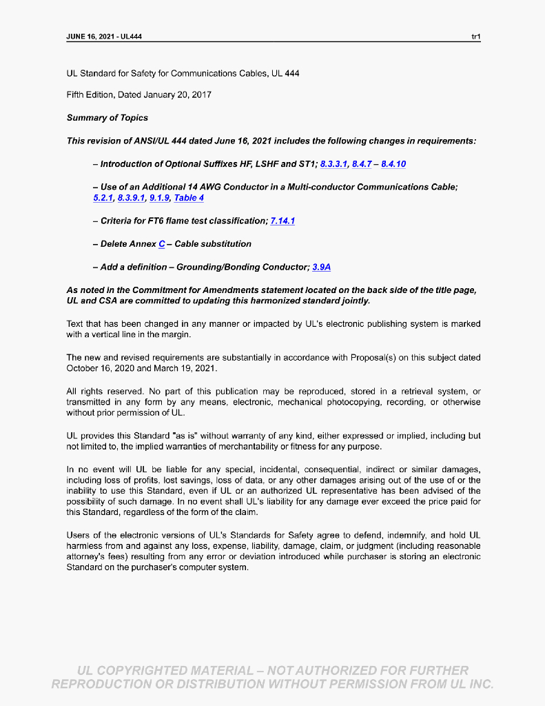 UL 444 STANDARD FOR SAFETY Communications Cables