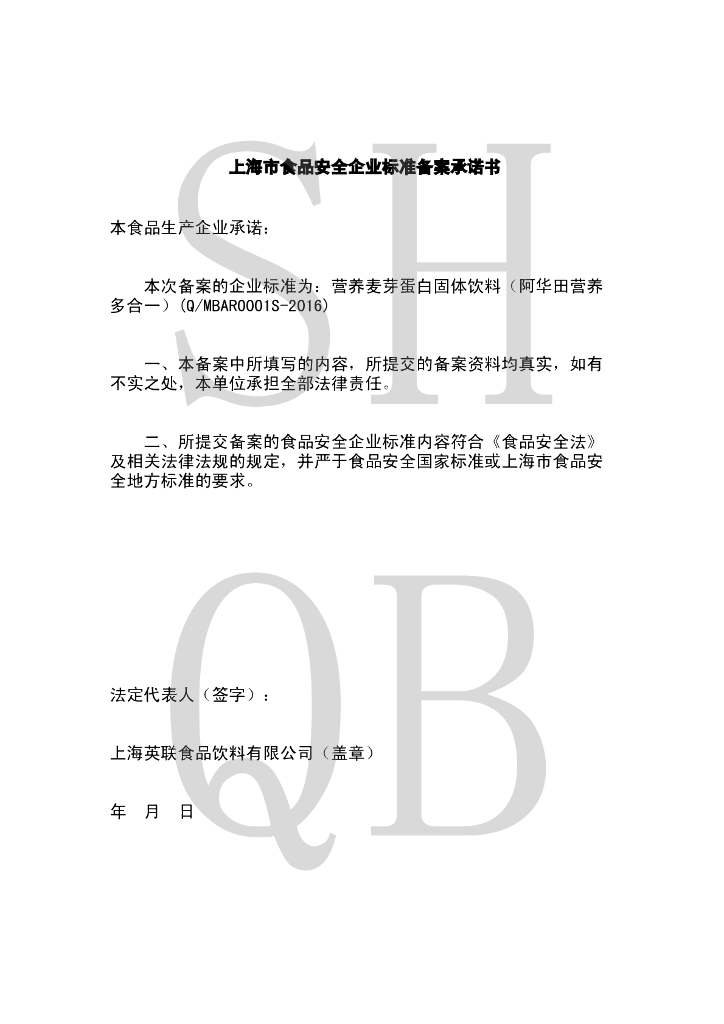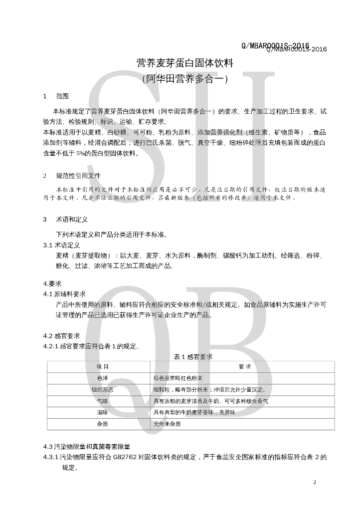 Q/MBAR 0001S-2016 营养麦芽蛋白固体饮料 (阿华田营养多合一)