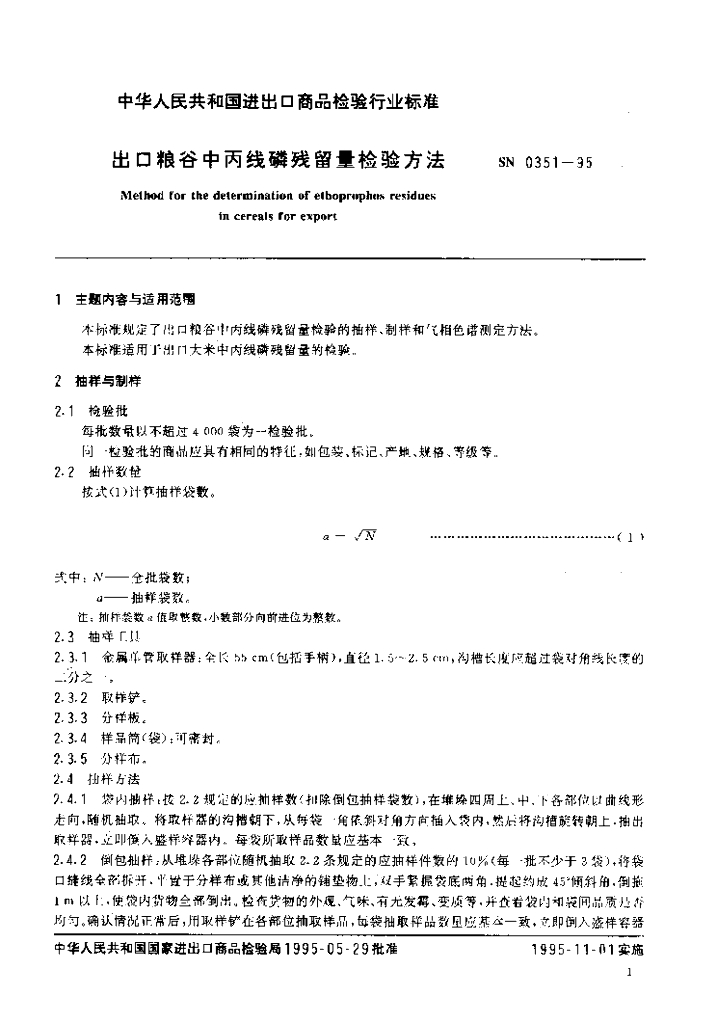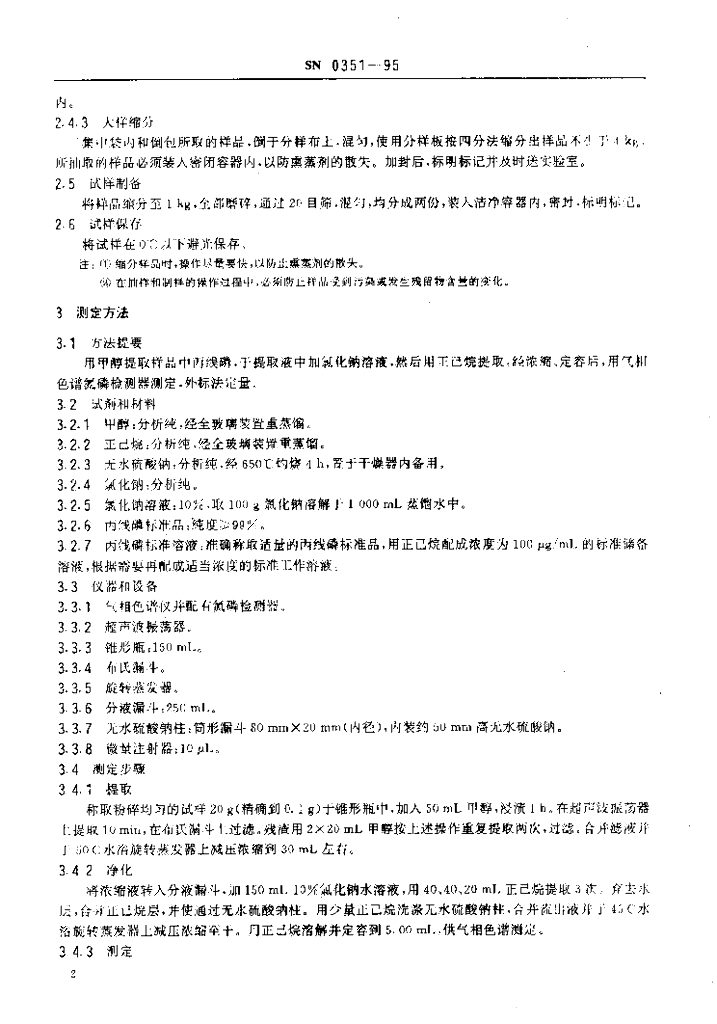 SN 0351-1995 出口粮谷中丙线磷残留量检验方法