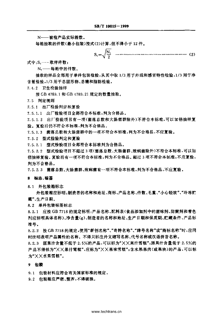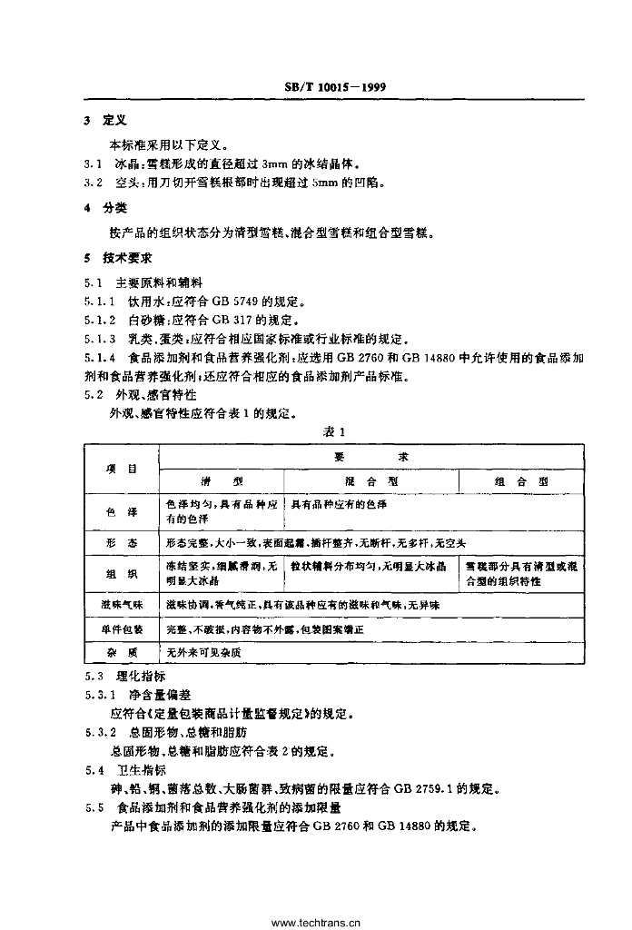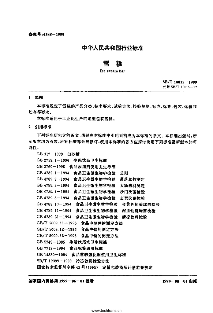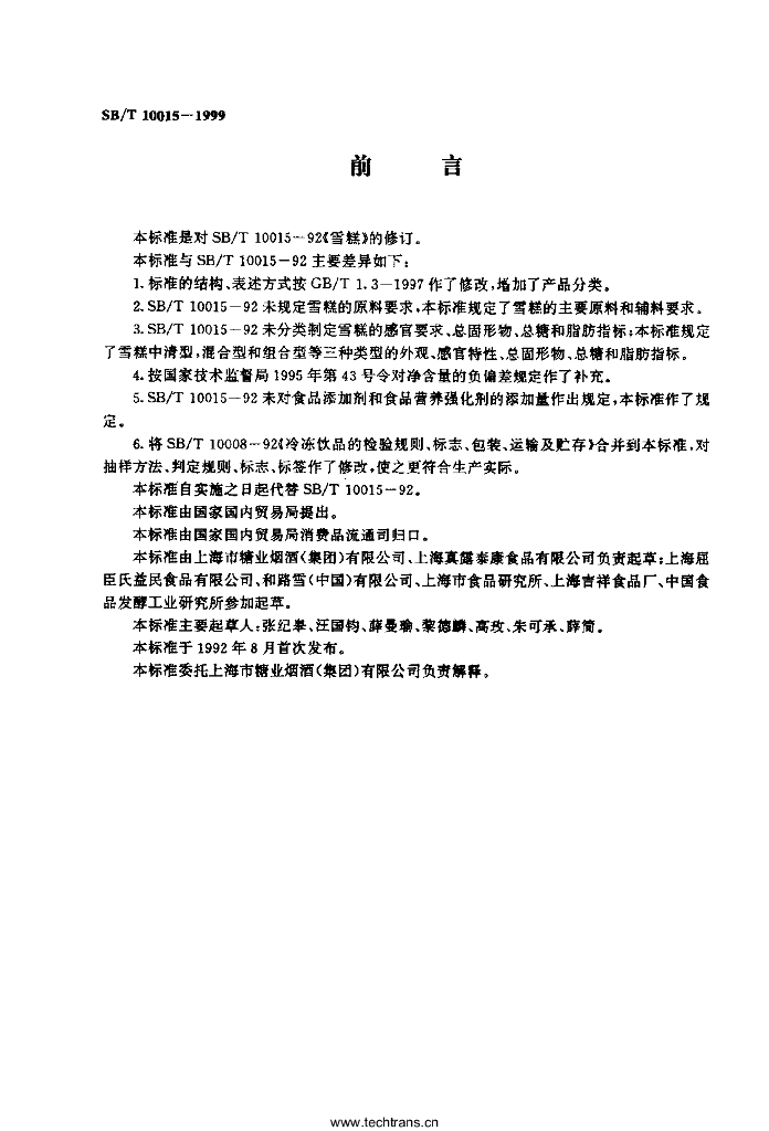 SB/T 10015-1999 雪糕
