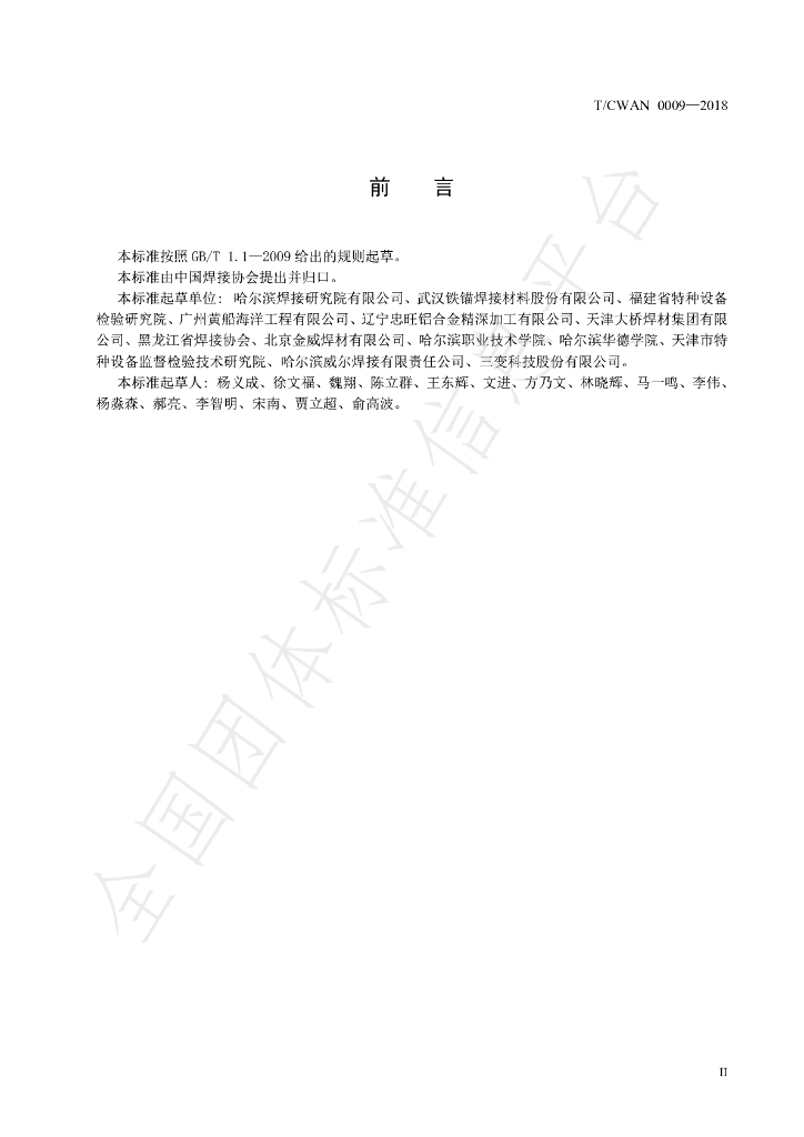 哈尔滨焊接研究院有限公司、武汉铁锚焊接材料股份有限公司、福建省特种设备检验研究院、广州黄船海洋工程有限公司、辽宁忠旺铝合金精深加工有限公司、天津大桥焊材集团有限公司、黑龙江省焊接协会、北京金威焊材有限公司、哈尔滨职业技术学院、哈尔滨华德学院、天津市特种设备监督检验技术研究院、哈尔滨威尔焊接有限责任公司、三变科技股份有限公司