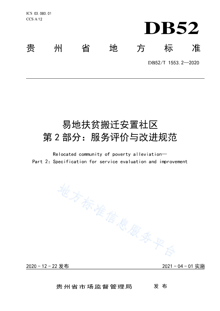 DB52/T 1553.2-2020 易地扶贫搬迁安置社区 第2部分:服务评价与改进规范