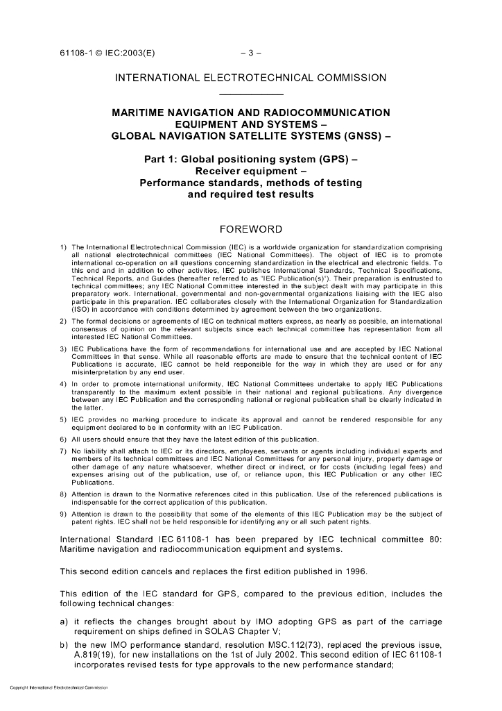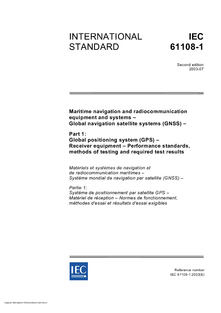 IEC 61108-1-2003 海上导航和无线电通信设备及系统 全球导航卫星系统(GNSS) 第1部分:全球定位系统(GPS) 接收设备 性能标准、测试方法和要求的测试结果