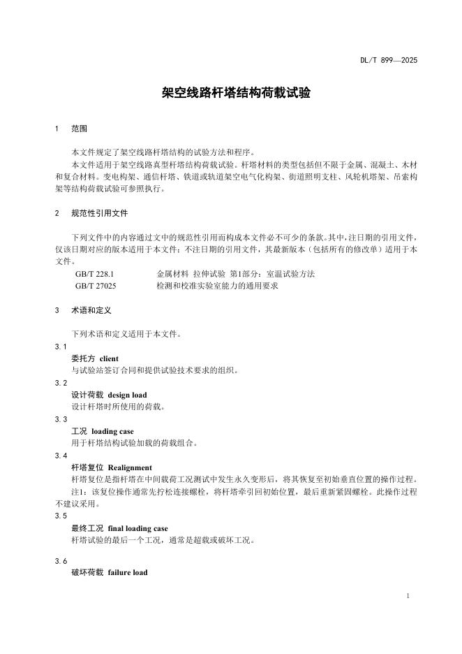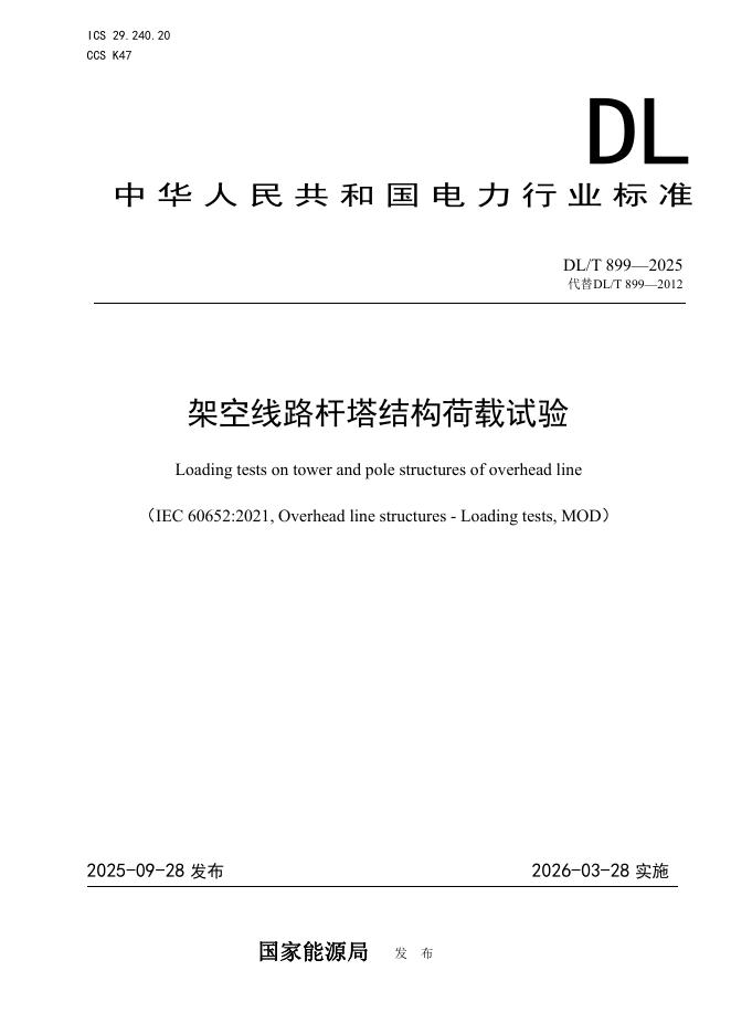DL/T 899-2025 架空线路杆塔结构荷载试验