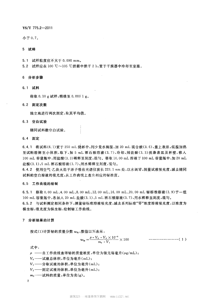 YS/T 775.2-2011 铅阳极泥化学分析方法 第2部分:铋量的测定火焰原子吸收光谱法和Na2EDTA滴定法