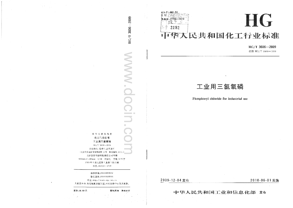 HG/T 3606-2009 代替 HG/T 3606-1999 工业用三氯氧磷