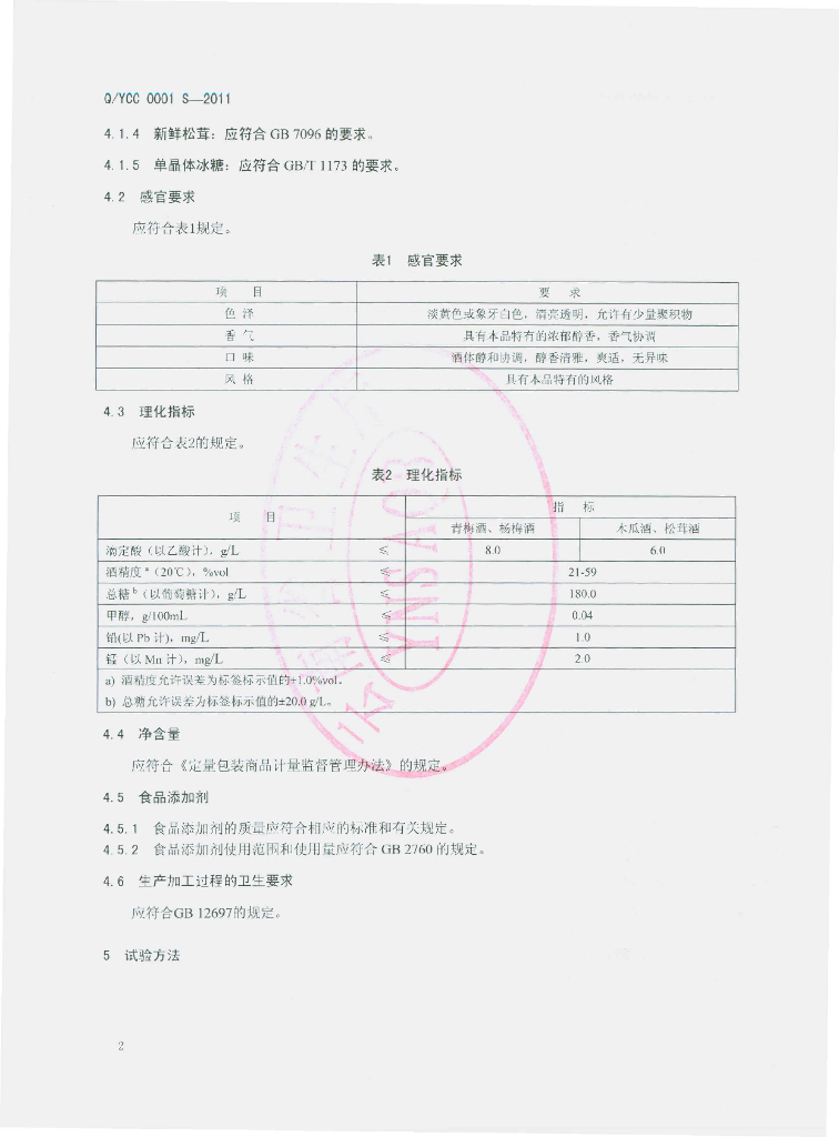 Q/YCC 0001S-2011 配制酒