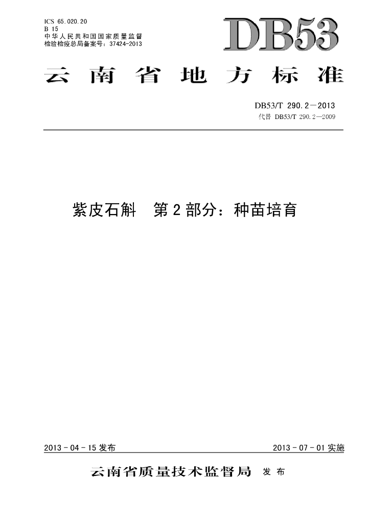 DB53/T 290.2-2013 紫皮石斛 第2部分:种苗培育