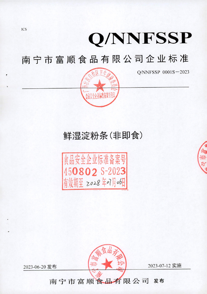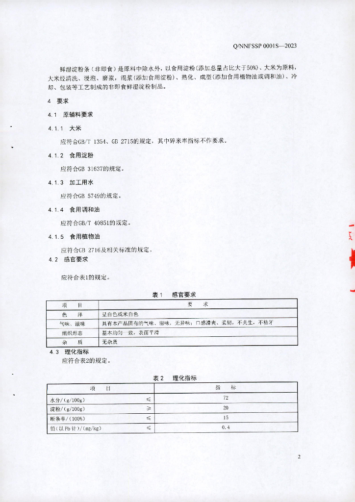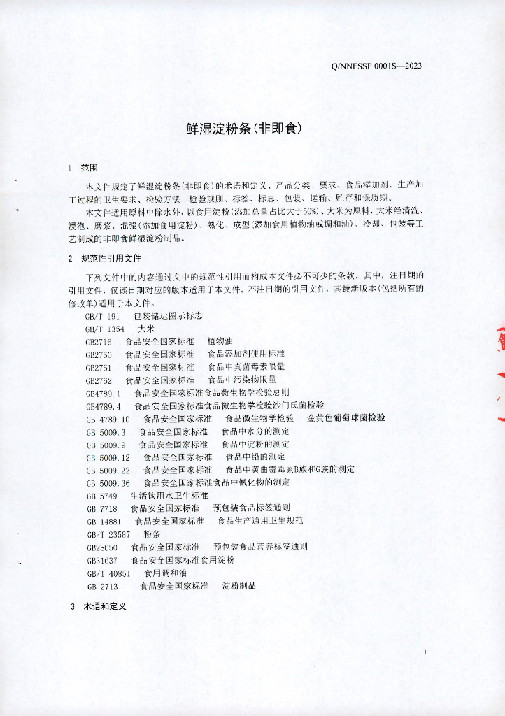 Q/NNFSSP 0001S-2023 鲜湿淀粉条(非即食)