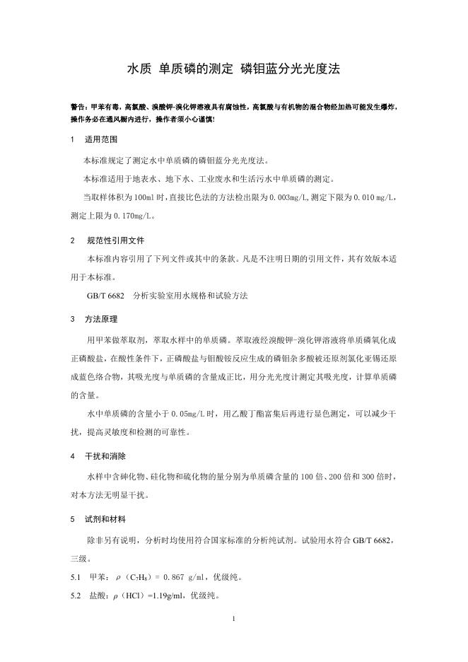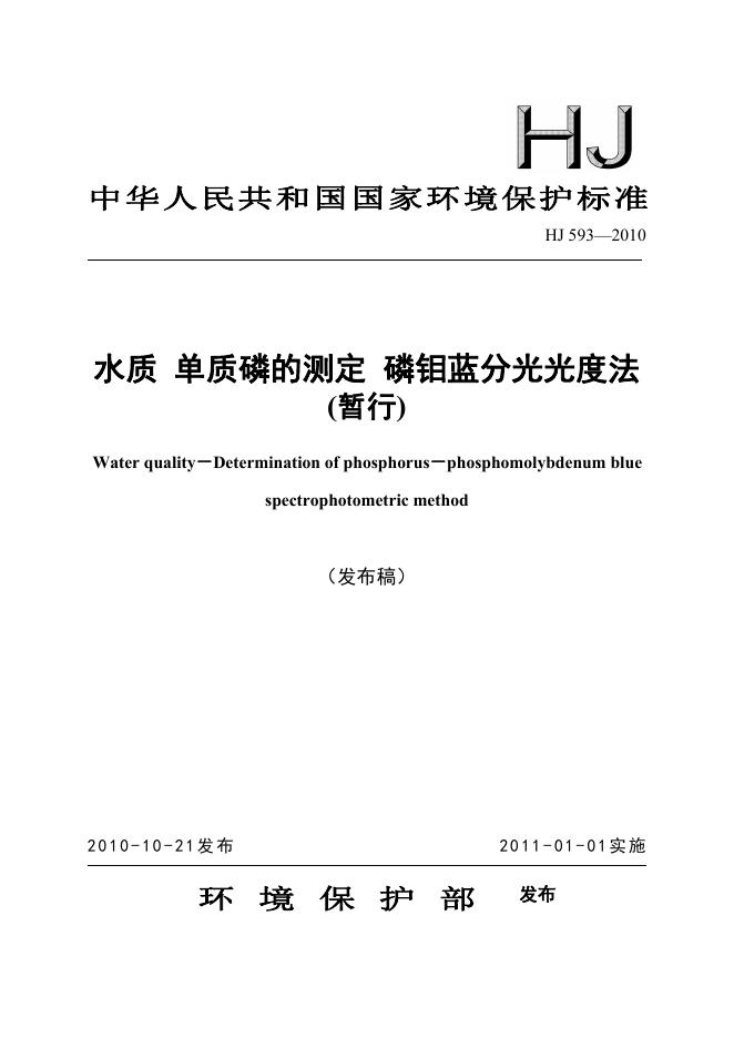 HJ 593-2010 水质 单质磷的测定 磷钼蓝分光光度法(暂行)