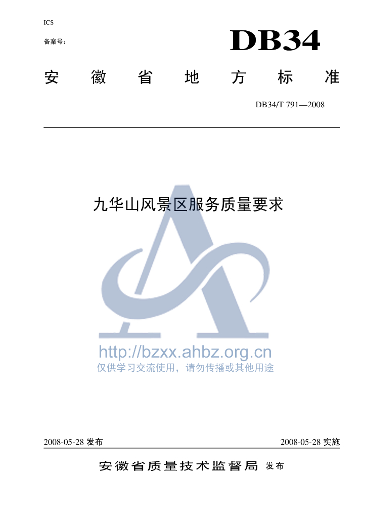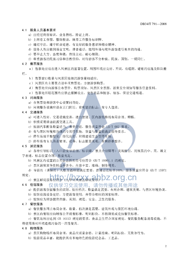 DB34/T 791-2008 九华山风景区服务质量要求