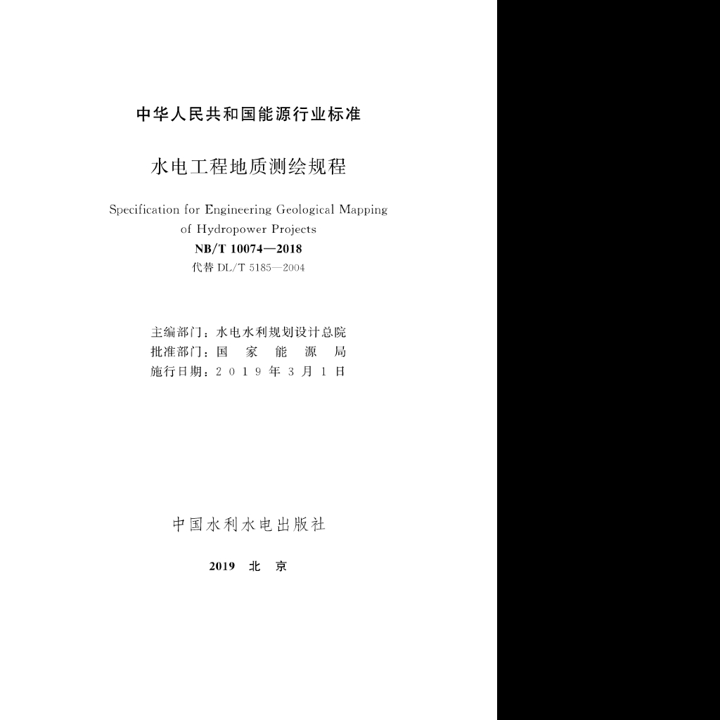NB/T 10074-2018 水电工程地质测绘规程