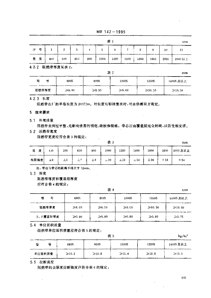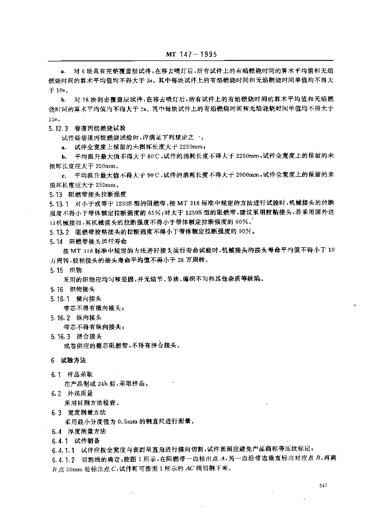 MT 147-1995 煤矿用阻燃抗静电织物整芯输送带