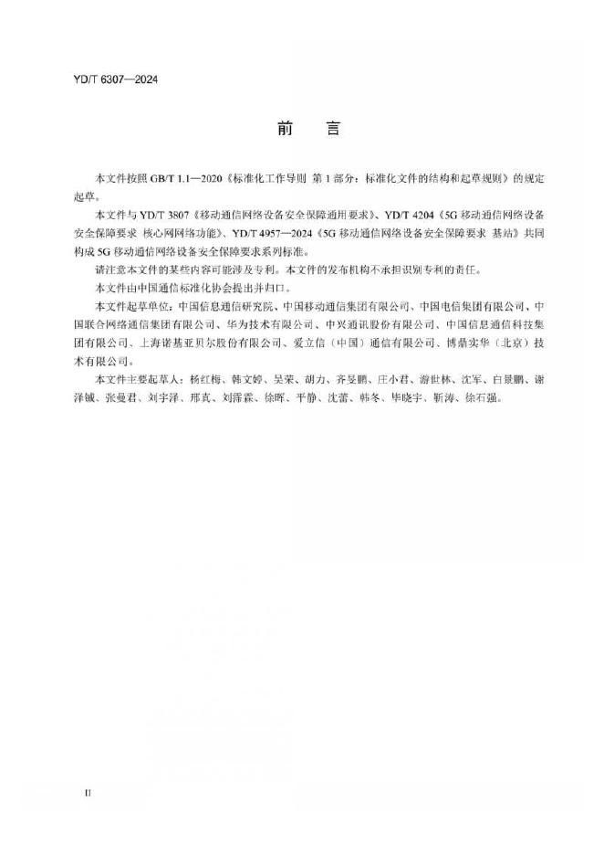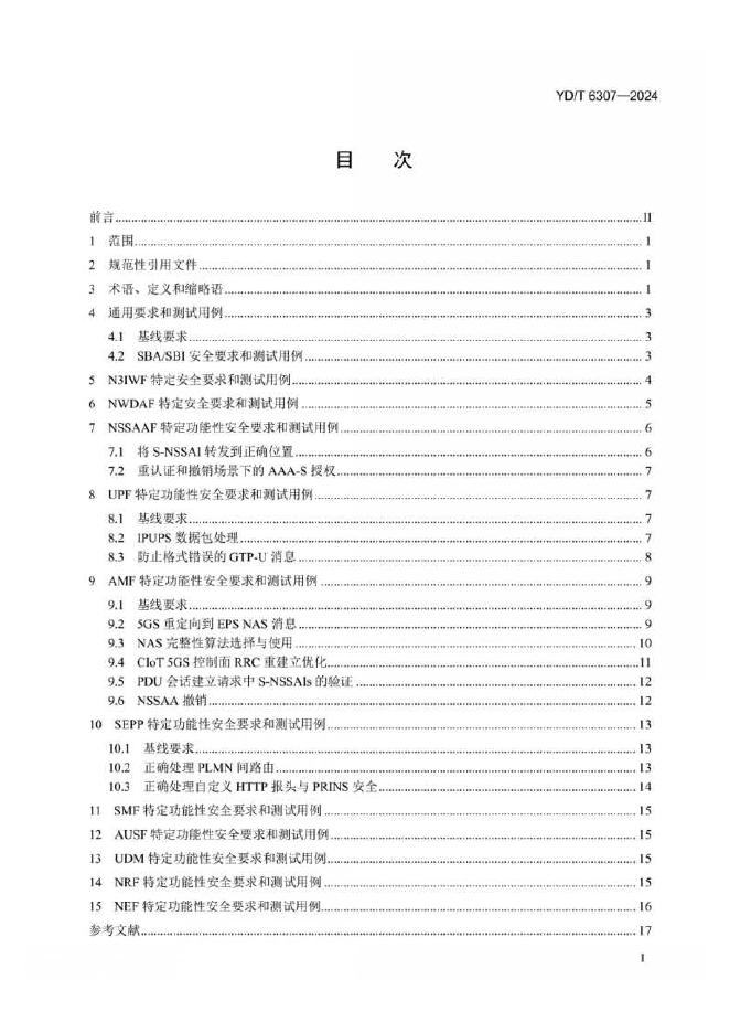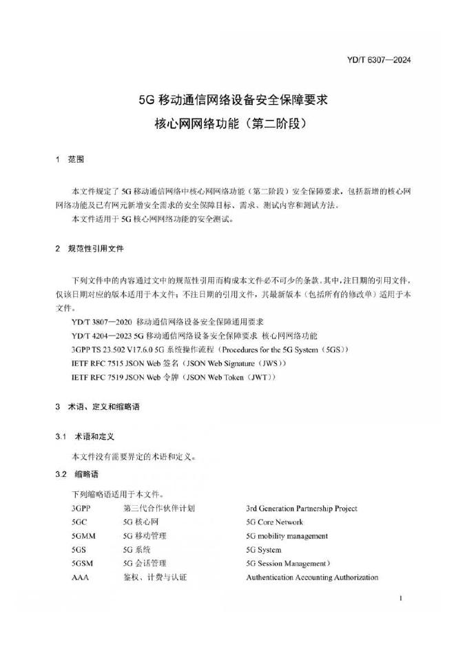YD/T 6307-2024 5G移动通信网络设备安全保障要求 核心网网络功能(第二阶段)