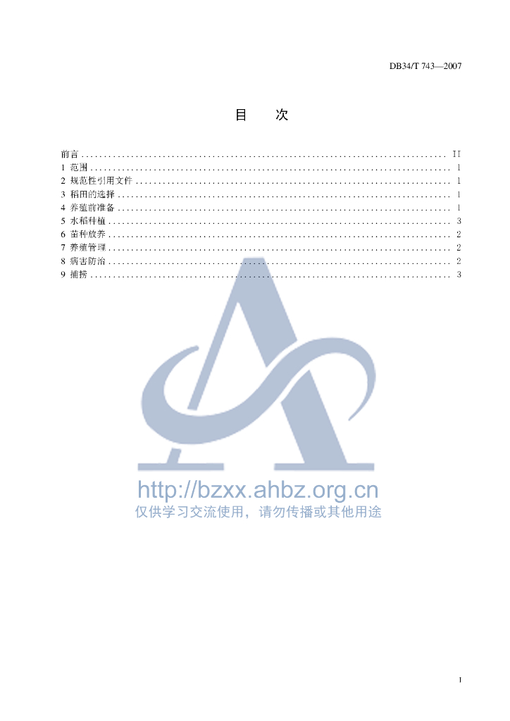 DB34/T 743-2007 无公害食品 泥鳅稻田生态养殖技术规程