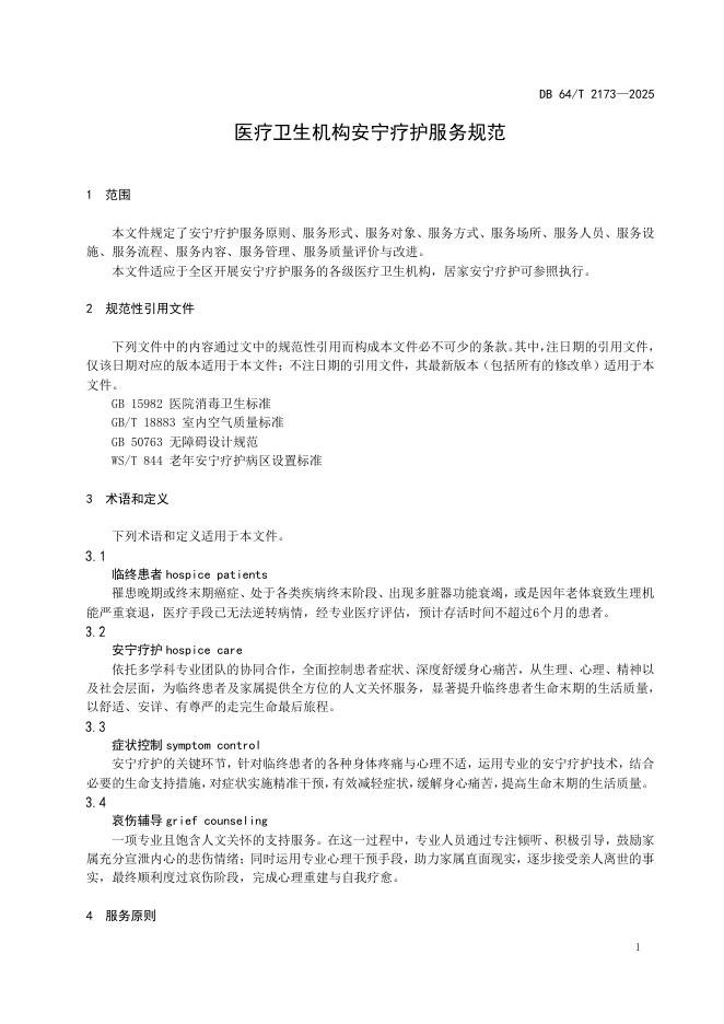 DB64/T 2173-2025 医疗卫生机构安宁疗护服务规范