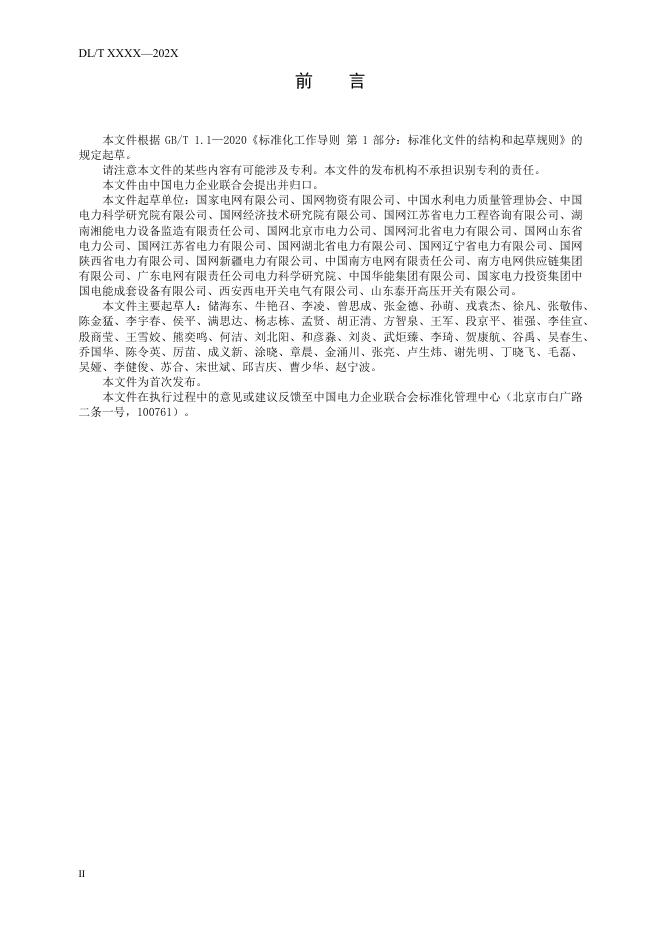 本文件起草单位:国家电网有限公司、国网物资有限公司、中国水利电力质量管理协会、中国电力科学研究院有限公司、国网经济技术研究院有限公司、国网江苏省电力工程咨询有限公司、湖南湘能电力设备监造有限责任公司、国网北京市电力公司、国网河北省电力有限公司、国网山东省电力公司、国网江苏省电力有限公司、国网湖北省电力有限公司、国网辽宁省电力有限公司、国网陕西省电力有限公司、国网新疆电力有限公司、中国南方电网有限责任公司、南方电网供应链集团有限公司、广东电网有限责任公司电力科学研究院、中国华能集团有限公司、国家电力投资集团