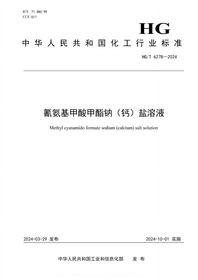 HG/T 6278-2024 氰氨基甲酸甲酯钠(钙)盐溶液