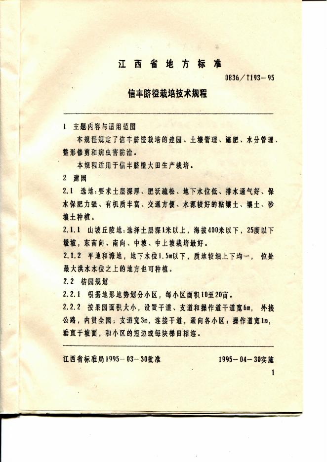 DB36/T 193-1995 信丰脐橙栽培技术规程