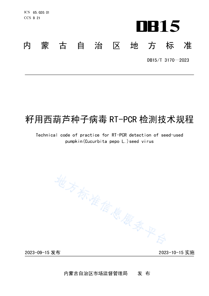 DB15/T 3170-2023 籽用西葫芦种子病毒RT-PCR检测技术规程