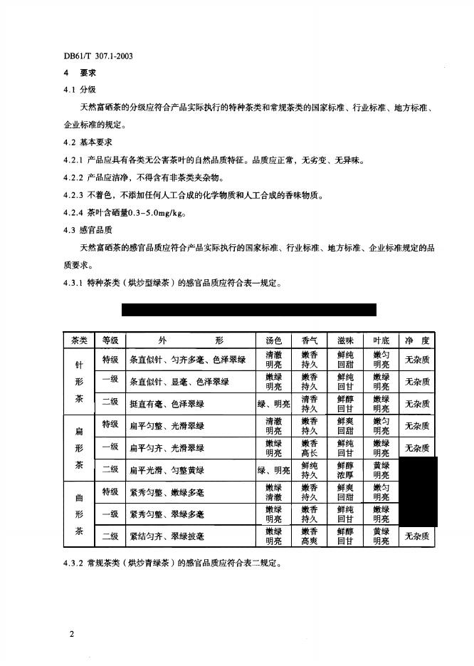 DB61/T 307.1-2003 天然富硒茶标准