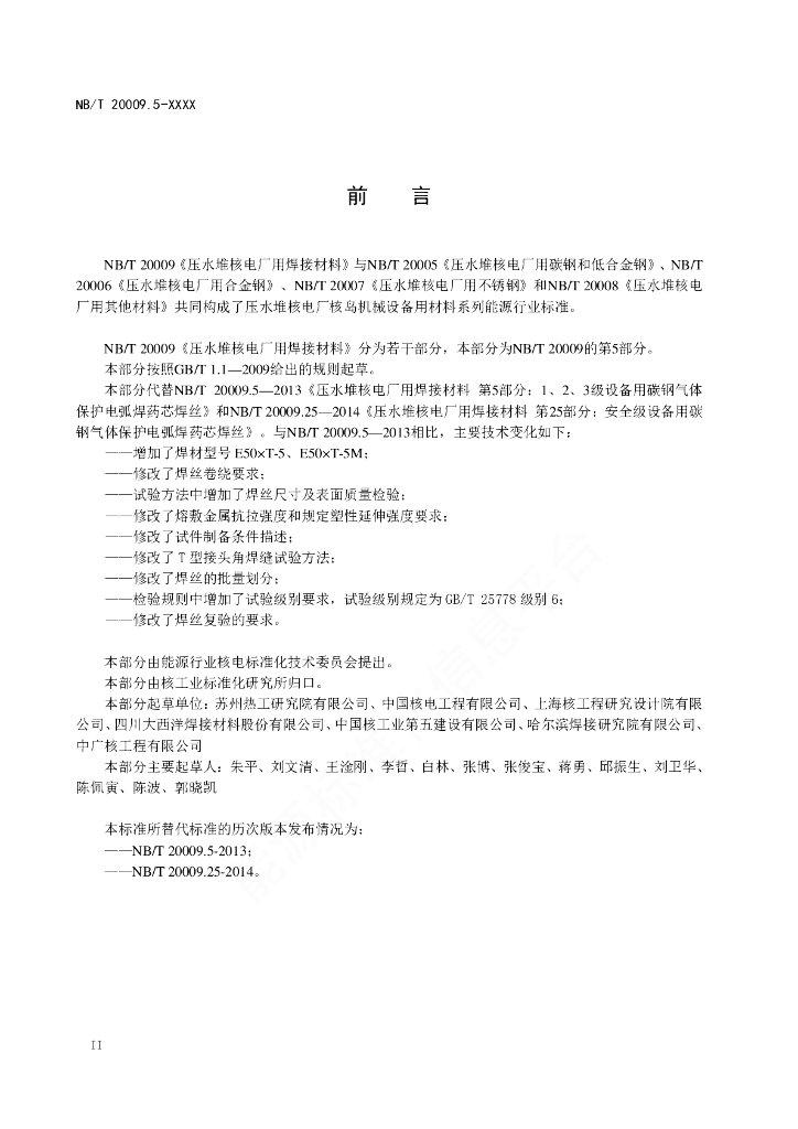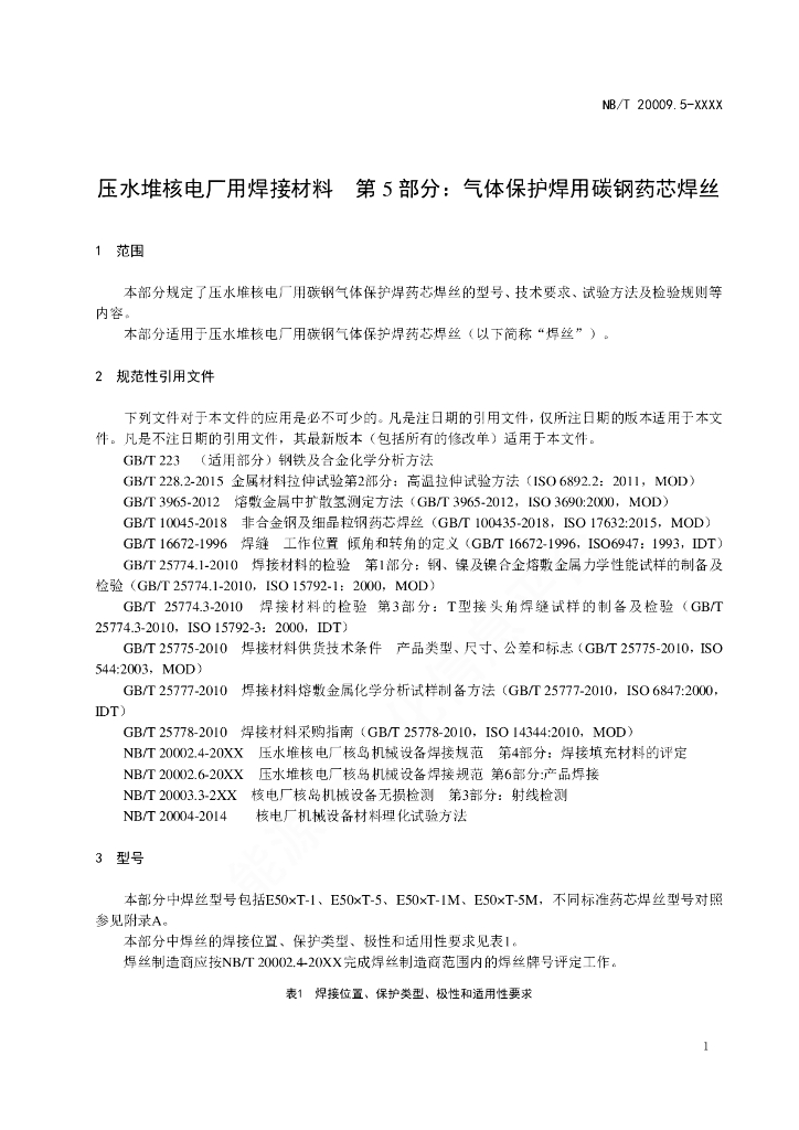 NB/T 20009.5-2021 压水堆核电厂用焊接材料 第5部分:气体保护焊用碳钢药芯焊丝