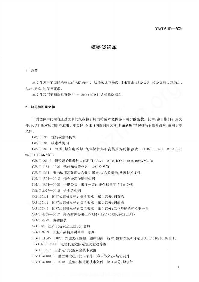 YB/T 6169-2024 模铸浇钢车