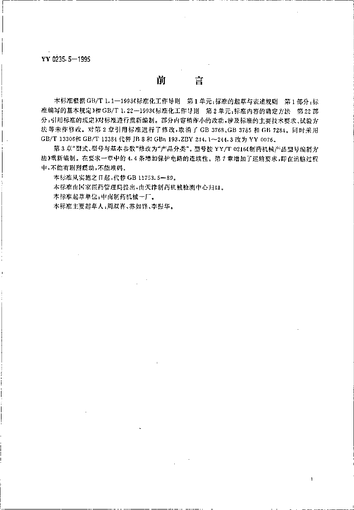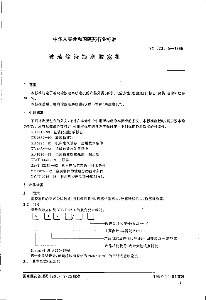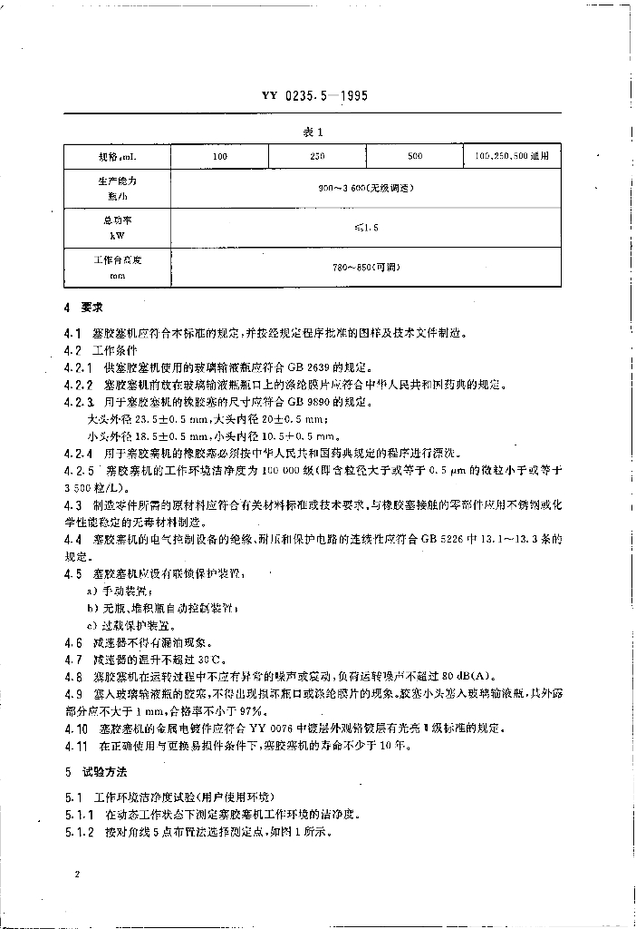 YY 0235.5-1995 玻璃输液瓶塞胶塞机