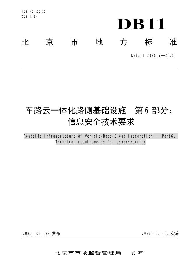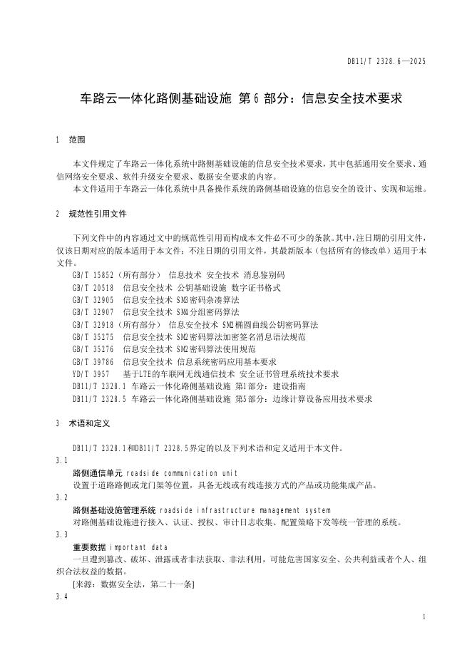 DB11/T 2328.6-2025 车路云一体化路侧基础设施 第6部分:信息安全技术要求