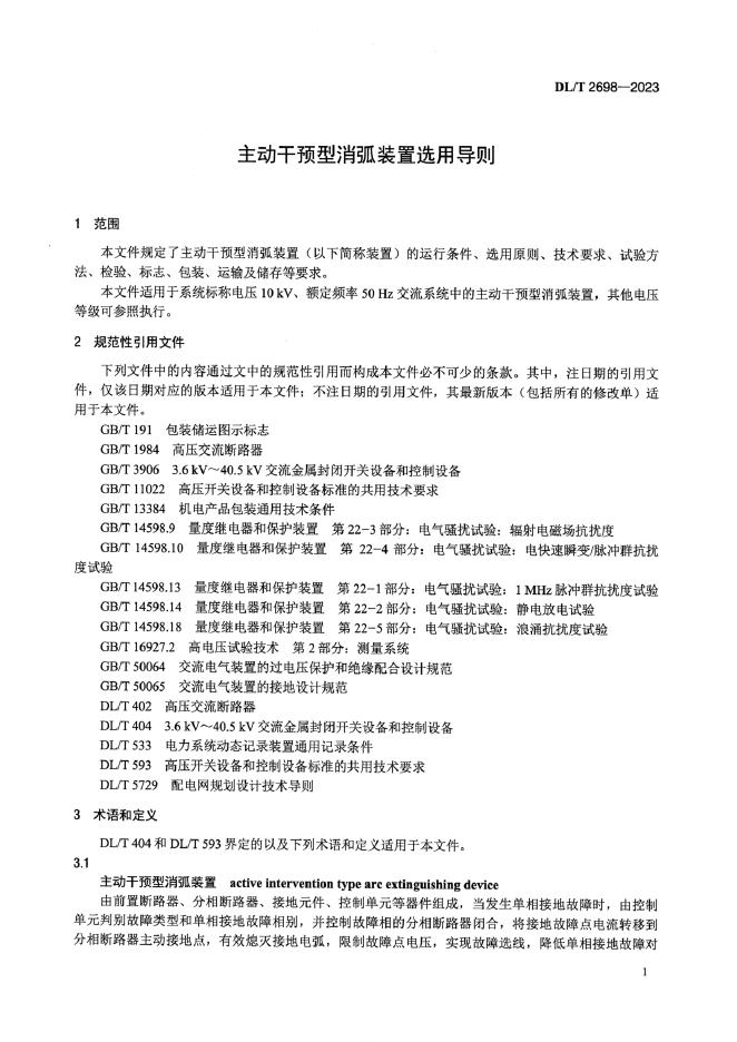 DL/T 2698-2023 主动干预型消弧装置选用导则